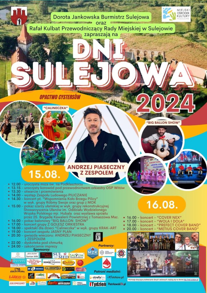 Zapraszamy na kolejne Dni Sulejowa, które odbędą się w najbliższy czwartek i piątek. Koncerty tradycyjnie odbędą się na Podklasztorzu. Gwiazdą tegorocznego święta miasta, będzie Andrzej Piaseczny z zespołem.