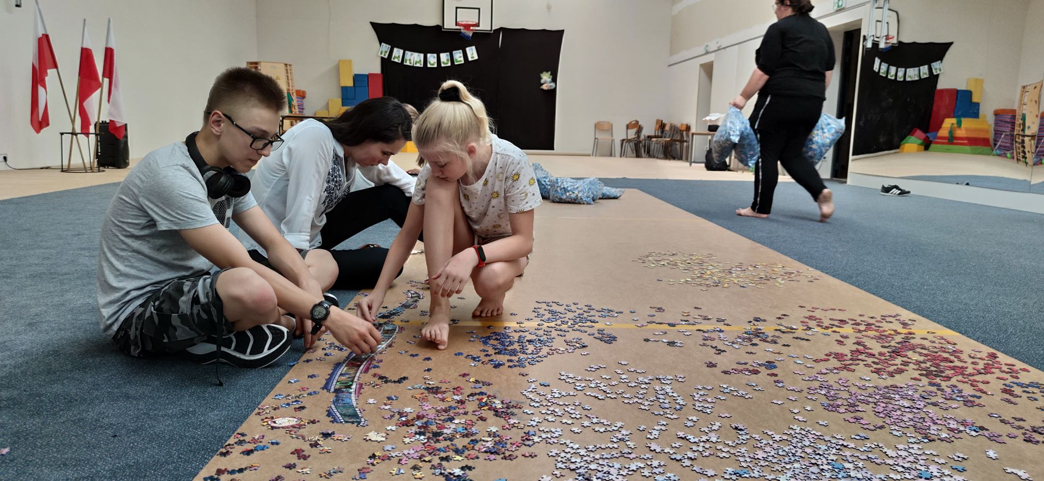 Uczniowie i nauczyciele z Prywatnej Językowej Szkoły Podstawowej w Piotrkowie, próbują pobić rekord Polski w układaniu puzzli. Poprzedni rekord należy do Rafała Kina, który ułożył obraz składający się z ponad 33,5 tysiąca elementów. Piotrkowianie rozpoczęli układanie puzzli z ponad 40 tysięcy elementów.