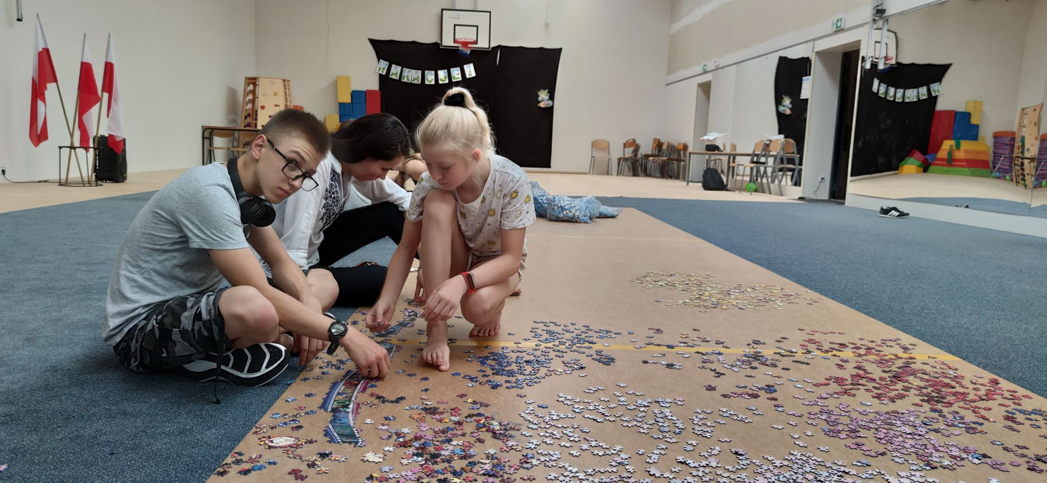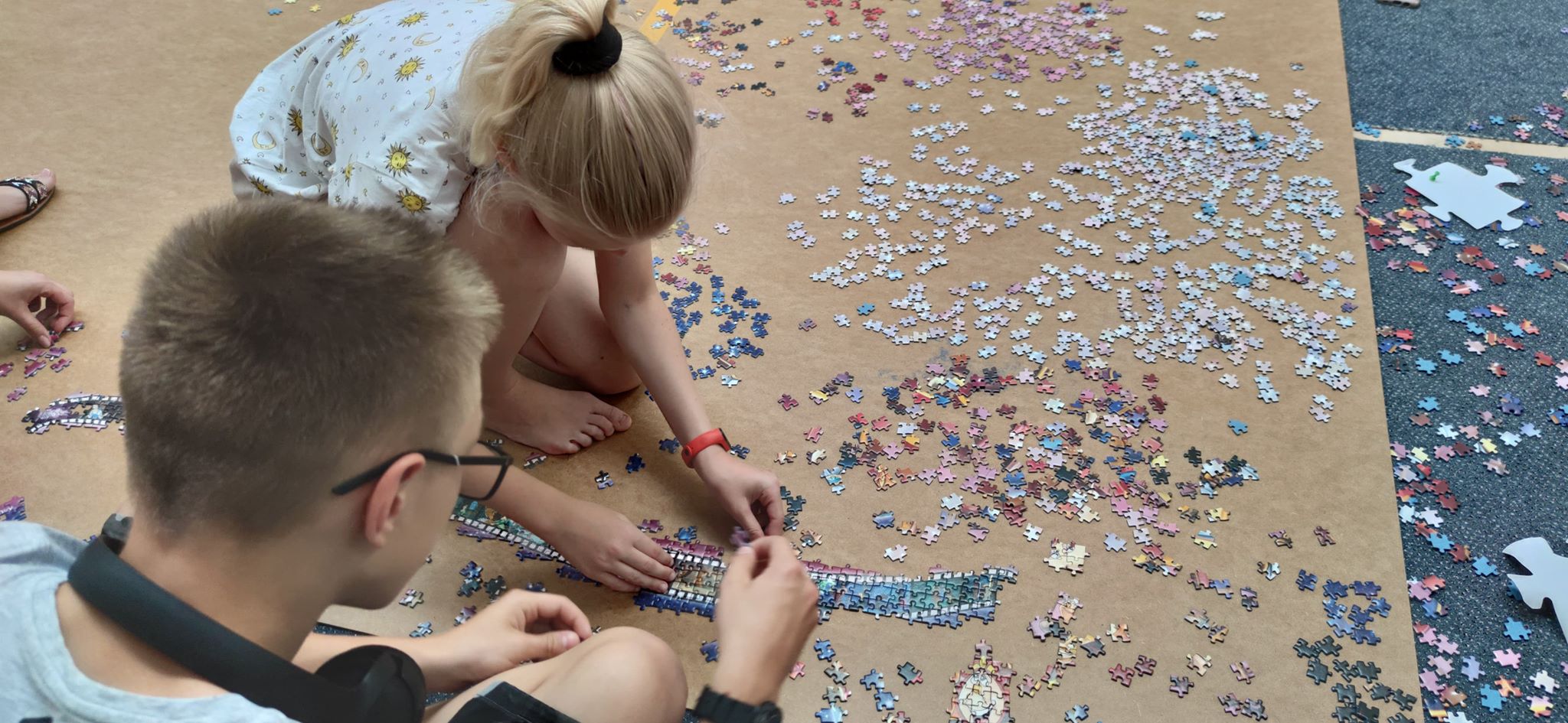 Uczniowie i nauczyciele z Prywatnej Językowej Szkoły Podstawowej w Piotrkowie, próbują pobić rekord Polski w układaniu puzzli. Poprzedni rekord należy do Rafała Kina, który ułożył obraz składający się z ponad 33,5 tysiąca elementów. Piotrkowianie rozpoczęli układanie puzzli z ponad 40 tysięcy elementów.