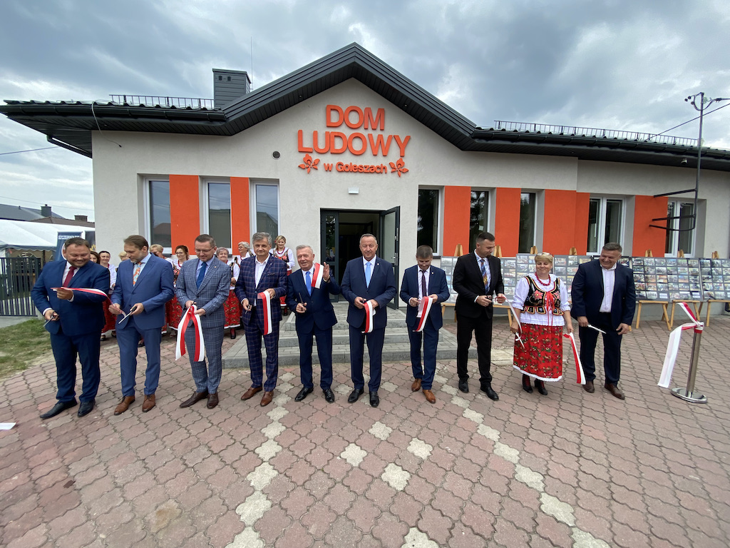 Przebudowa budynku Domu Ludowego w Goleszach Dużych była zakończona w październiku 2020 r, ale wtedy, z powodu pandemii, nie można było świętować przekazania obiektu lokalnej społeczności. Uroczyste otwarcie z udziałem gości, którzy licznie dopisali odbyło się pół roku później 31 lipca 2021 r.