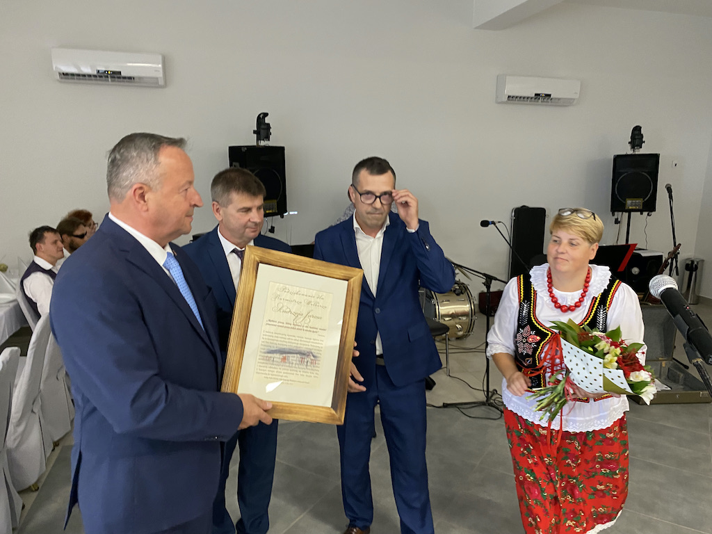 W imieniu mieszkańców podziękowania za inwestycje na ręce Posła, Wicemarszałka, Wicestarosty i Burmistrza Wolborza Andrzeja Jarosa złożyli wspólnie Sołtys Zbigniew Klewin i Małgorzata Pościk przewodnicząca KGW.
