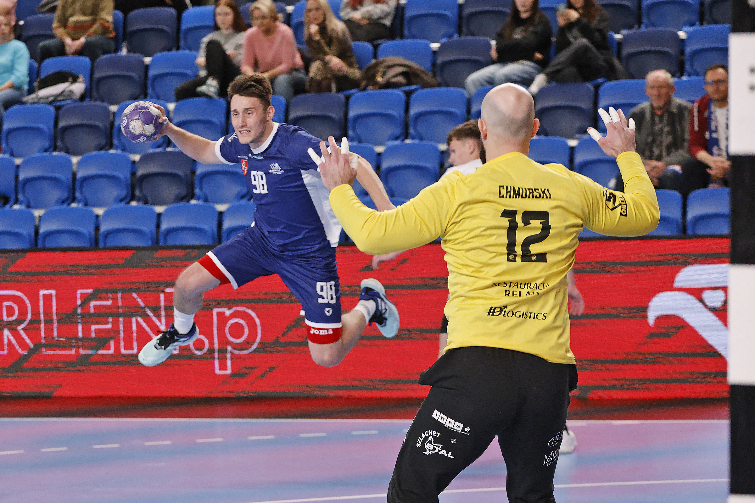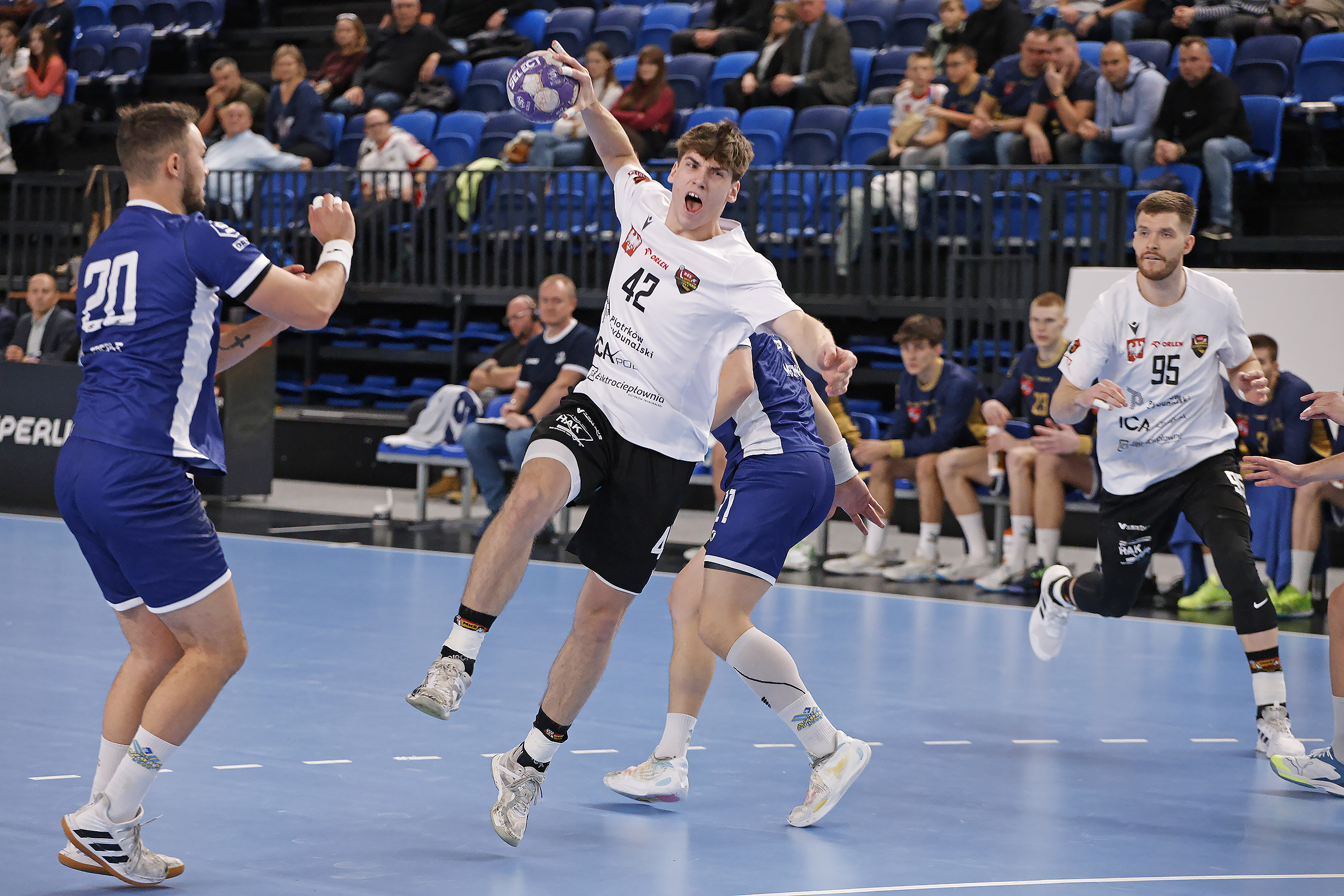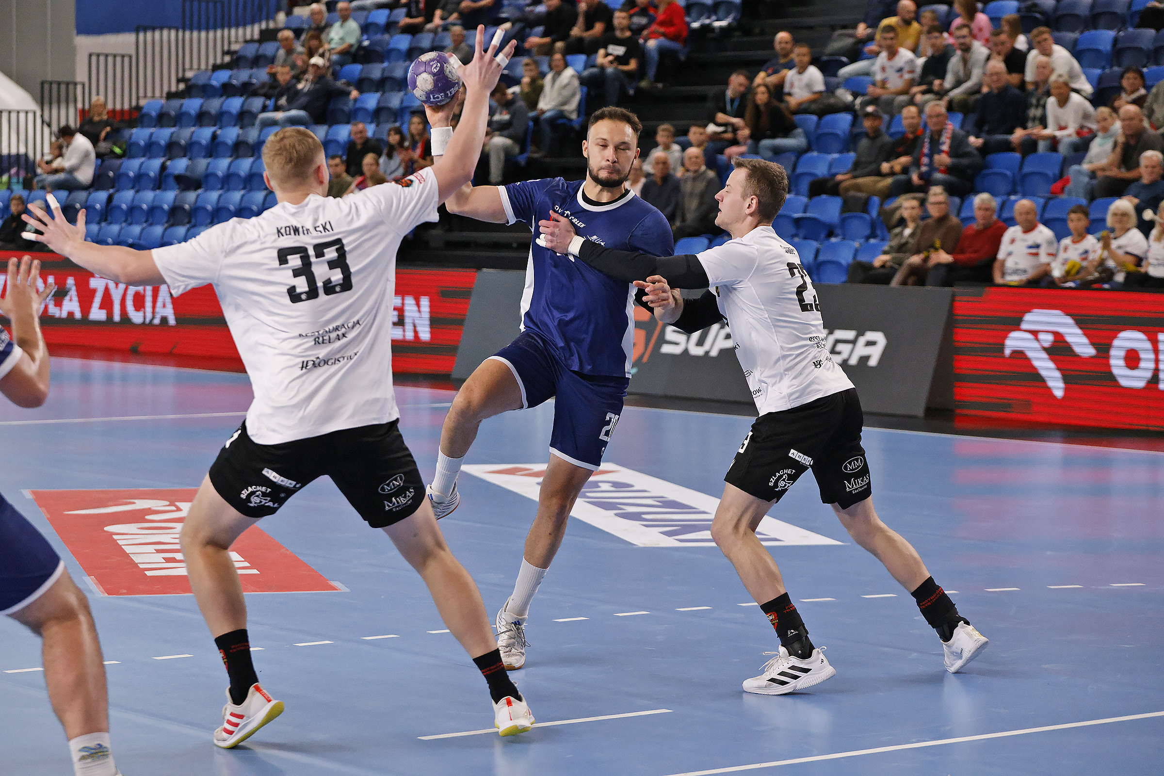 Pierwsza połowa miała dwa oblicza. Początek zdecydowanie należał do miejscowych, którzy w 5. minucie prowadzili już trzema bramkami (5:2). Nic w tym momencie nie wskazywało, że gospodarze mogą mieć dziś problem z odniesieniem zwycięstwa. Ale po bardzo udanym początku w grze miejscowych pojawiły się błędy techniczne w ataku, co skrzętnie wykorzystali rywale. W 12. minucie po dwóch z rzędu trafieniach Rutkowskiego na tablicy wyników widniał remis po 8. Kiedy w 15. minucie Jarosiewicz znów wyprowadził Azoty na dwubramkowe prowadzenie wydawało się, że podopieczni Patryka Kuchczyńskiego opanowali sytuację. Niestety kolejne błędy i nieskuteczna gra w ofensywie sprawiły, że w 19. minucie goście wyszli pierwszy raz na prowadzenie (11:12). Ostatnie 10 minut to nerwowa gra miejscowych i sukcesywne budowanie przewagi przez gości, którzy pierwszą połowę zakończyli trzybramkowym prowadzeniem.