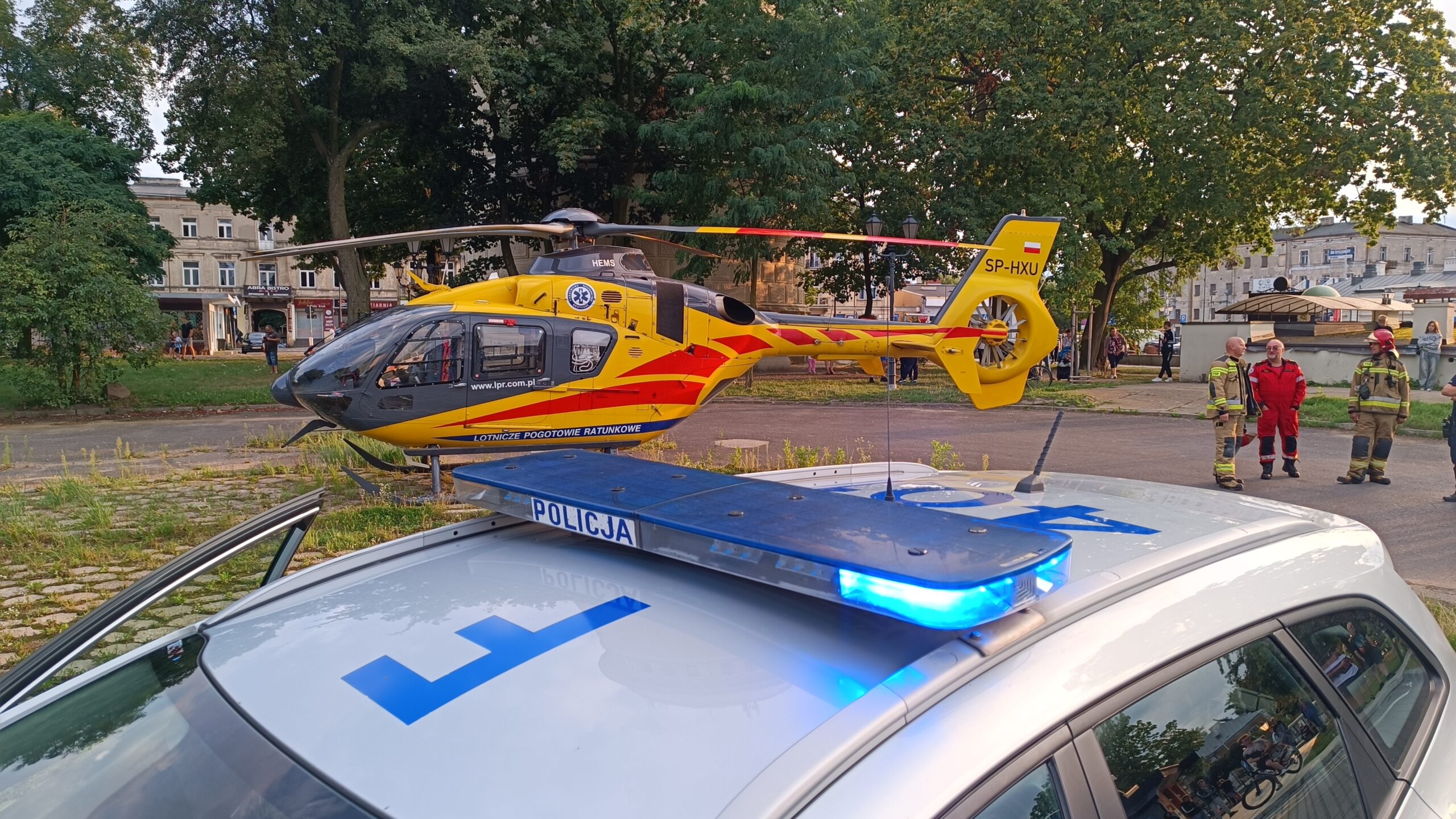Siedmioletni chłopiec spadł ze schodów w jednej z kamienic przy ulicy Sienkiewicza w Piotrkowie. W związku z brakiem wolnych kartek, na miejsce zadysponowano śmigłowiec Lotniczego Pogotowia Ratunkowego. Mamie chłopca także trzeba było udzielić pomocy.