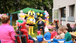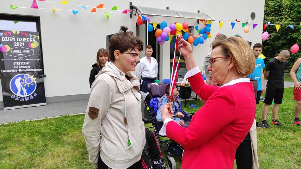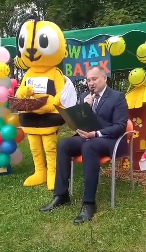 Natomiast w „Szansie” królowały gry i zabawy ruchowe. Był tor przeszkód, przeciąganie liny oraz pokazy wschodnich sztuk walki. Nie zabrakło malowania buzi i pysznego, zdrowego poczęstunku. Bajkę o pszczołach przeczytał starosta powiatu Piotr Wojtysiak.