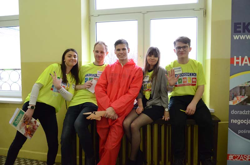 Mimo deszczowej pogody, młodsi koledzy tłumnie pojawili się na Dniu Otwartym „Ekonomika”, zarówno w grupach zorganizowanych pod opieką nauczycieli jak i na własną rękę. – Wszystkim którzy odwiedzili naszą szkołę serdecznie dziękujemy. Wierzymy, że zainteresowanie ofertą naszej placówki spełniło ich oczekiwania i wszyscy znaleźli coś dla siebie. Zaprezentowaliśmy wszystkie kierunki kształcenia – technika ekonomistę, handlowca, logistyka, reklamy, fotografii i multimediów, a także nowy kierunek w skali kraju technika rachunkowości. A że nie tylko ofertą edukacyjną człowiek żyje, to pokazaliśmy jaka atmosfera u nas panuje, jakie relacje nas łączą, no i oczywiście że kreatywność to nasza pasja. Było głośno, kolorowo, zabawnie i radośnie z nutką poważnych tematów i profesjonalnym doradztwem w sprawie kluczowej, czyli wyborze nowej ścieżki kształcenia na następne lata – mówią nauczyciele „Ekonomika”.