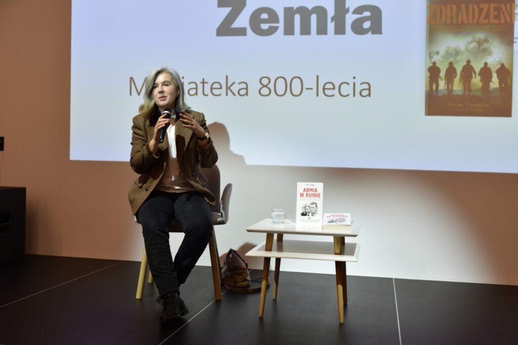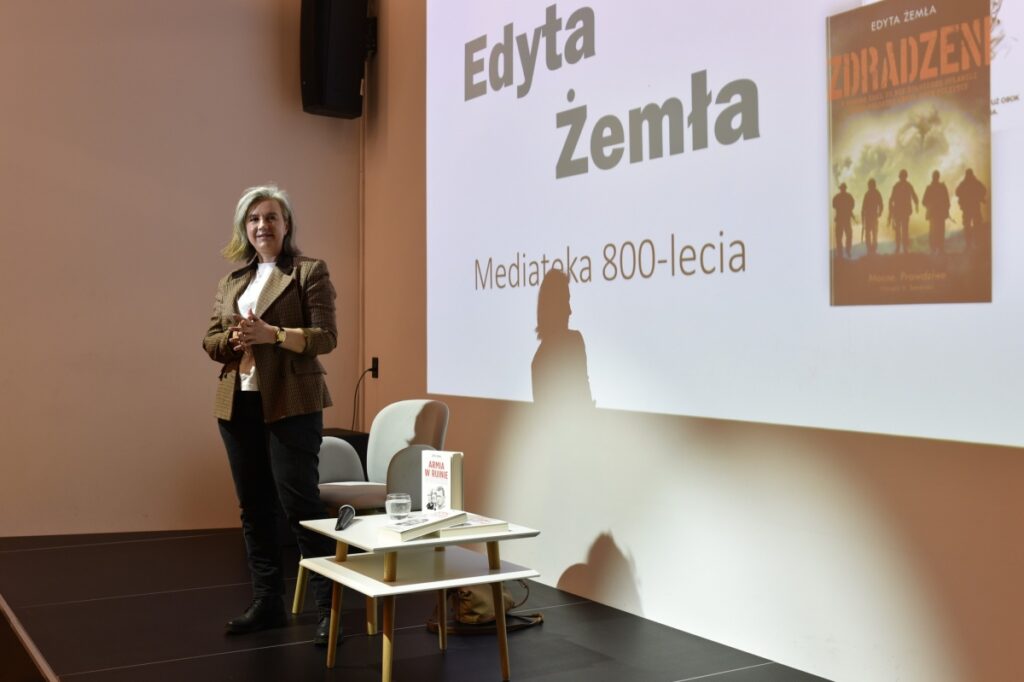 28 marca 2025 roku w Mediatece 800-lecia gościliśmy Edytę Żemłę – dziennikarkę Onetu, specjalistkę w tematyce wojskowej, korespondentkę wojenną i autorkę książek reporterskich. Edyta Żemła, autorka książek „Armia w ruinie” i „Zdradzeni”, w której odsłania kulisy sprawy Nangar Khel, oraz współautorka wywiadu rzeki „Jesteśmy na progu wojny”, opowiadała o kulisach pracy reportera w strefach konfliktu, znaczeniu rzetelnego dziennikarstwa i wydarzeniach, które kształtują współczesną historię.