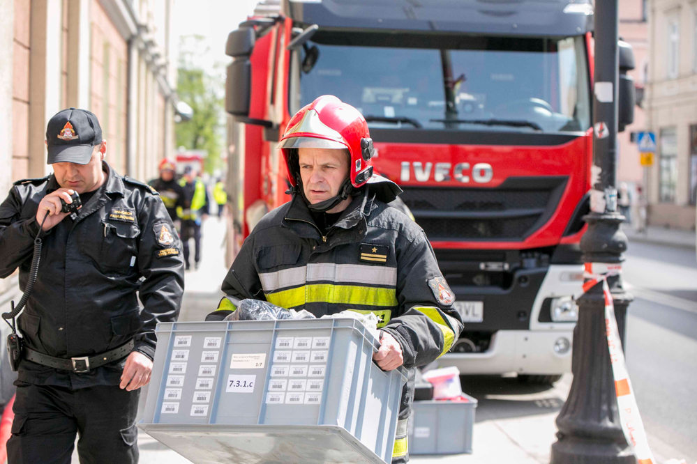 – Ćwiczenia dotyczyły postępowania z niebezpieczną przesyłką. W pierwszej kolejności zgłoszenie trafiło do piotrkowskiej policji, która wykluczyła, że jest to ładunek pirotechniczny. Następnie nasi funkcjonariusze z zastępu chemicznego z PSP z Łodzi, dokonał identyfikacji, czy jest to przesyłka biologiczna – powiedział w rozmowie z nami st.kpt. Piotr Kaźmierczak z piotrkowskiej straży pożarnej. – Bardzo dobrze zadziałał personel Poczty. Wszyscy (zarówno pracownicy jak i klienci Urzędu Pocztowego) zostali ewakuowani jeszcze przed przybyciem strażaków. W sumie to były 34 osoby. Zgodnie z naszymi procedurami, transport podejrzanej przesyłki zostałby zlecony do laboratorium w Puławach. – dodał Piotr Kaźmierczak.