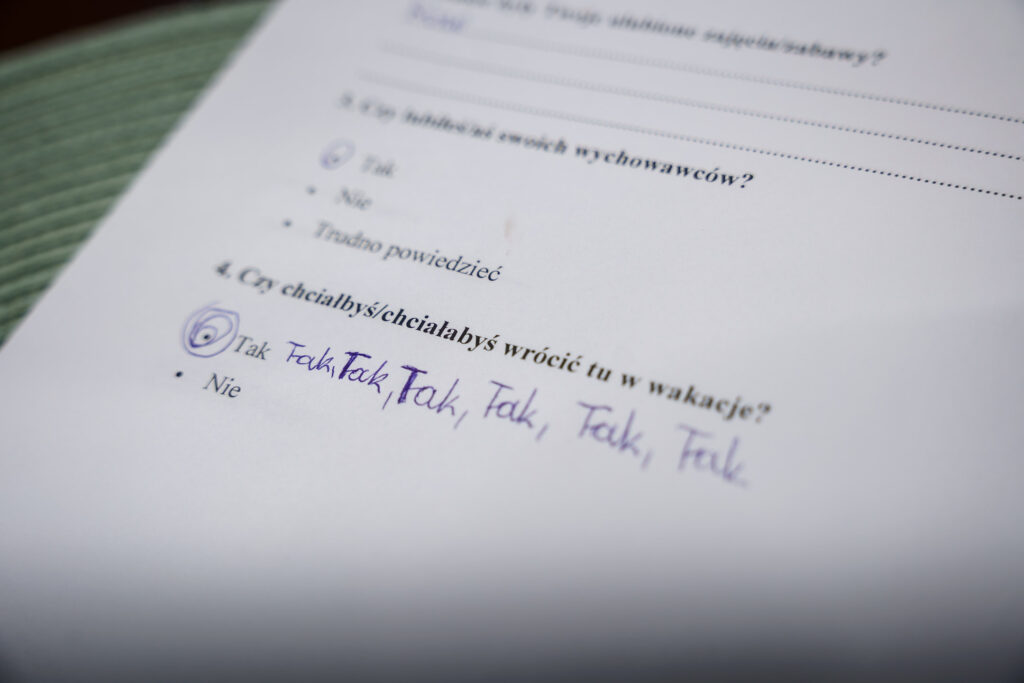 Ostatnim punktem półkolonii były dyplomy i pamiątki, a także ankieta, w której dzieci oceniały spędzony czas. Na pytanie „czy chcą wrócić do CRE w wakacje” jednogłośnie odpowiedziały „tak!”