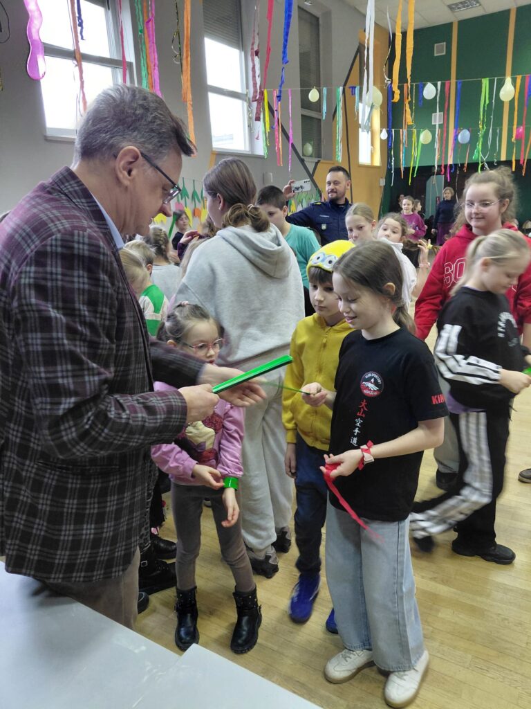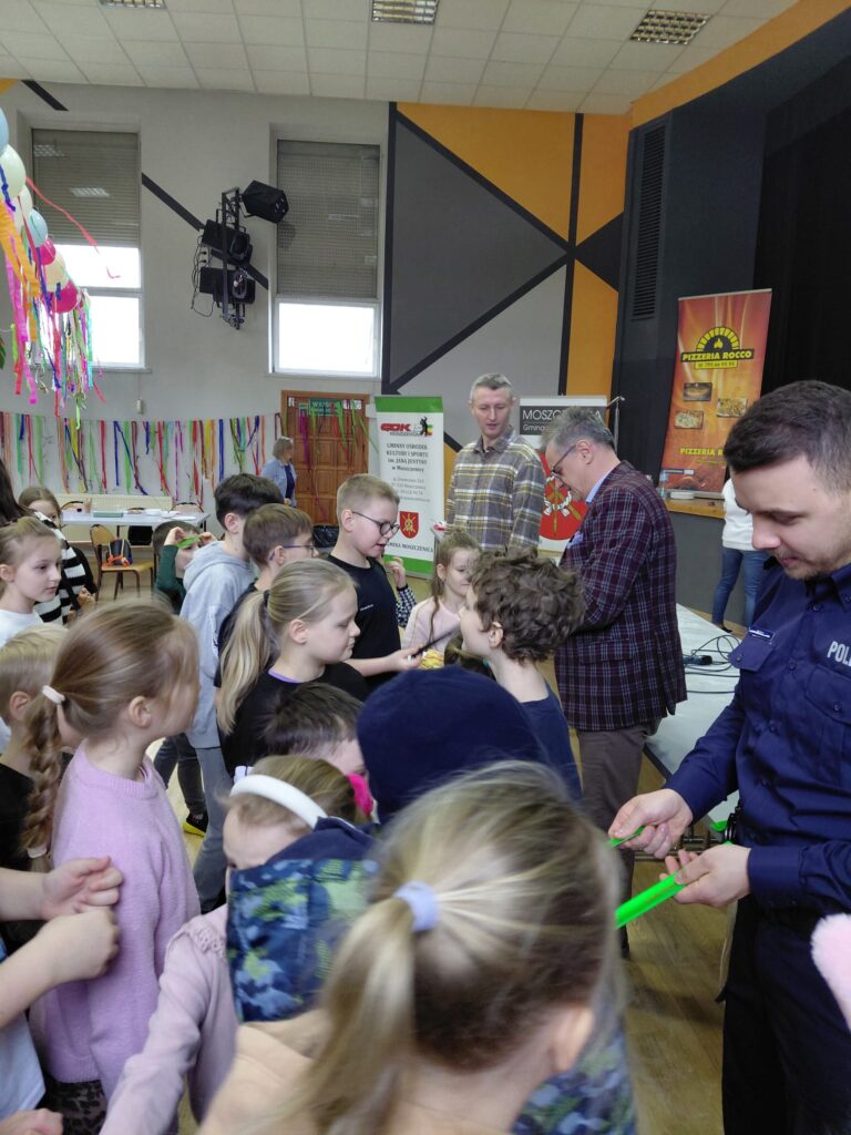 Na zakończenie organizatorzy przygotowali spotkanie profilaktyczne z funkcjonariuszami policji, dotyczące bezpieczeństwa w drodze do i ze szkoły. Wójt gminy Moszczenica Dariusz Magacz, wspólnie z policjantami wręczył dzieciom odblaski, podkreślając, jak ważne jest dbanie o widoczność i bezpieczeństwo najmłodszych.