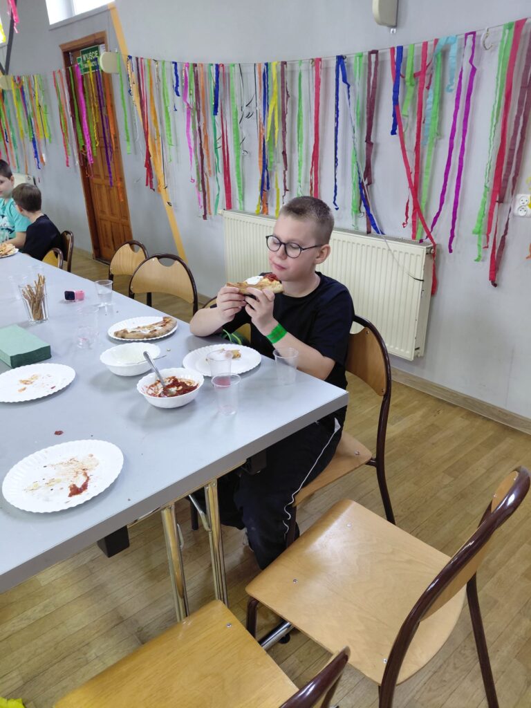 Finał ferii — w piątek 13 — okazał się wyjątkowo szczęśliwy. W sali widowiskowej GOKiS odbyła się zabawa przy muzyce oraz rozgrywki gier planszowych. Dzięki wsparciu zaprzyjaźnionej Pizzeria Rocco dzieci mogły własnoręcznie przygotować pizzę, która smakowała jeszcze lepiej po wspólnej pracy.