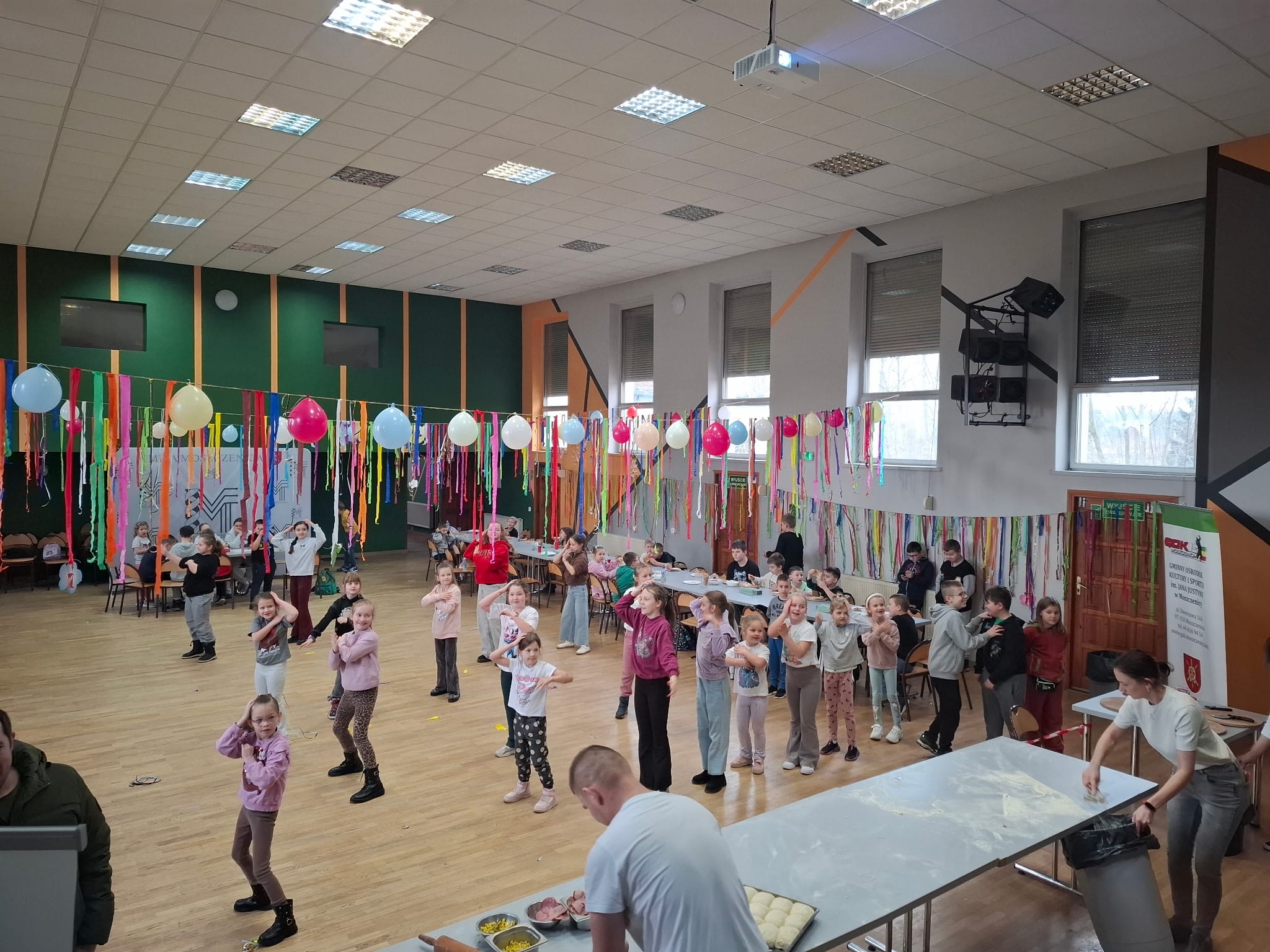 Finał ferii — w piątek 13 — okazał się wyjątkowo szczęśliwy. W sali widowiskowej GOKiS odbyła się zabawa przy muzyce oraz rozgrywki gier planszowych. Dzięki wsparciu zaprzyjaźnionej Pizzeria Rocco dzieci mogły własnoręcznie przygotować pizzę, która smakowała jeszcze lepiej po wspólnej pracy.