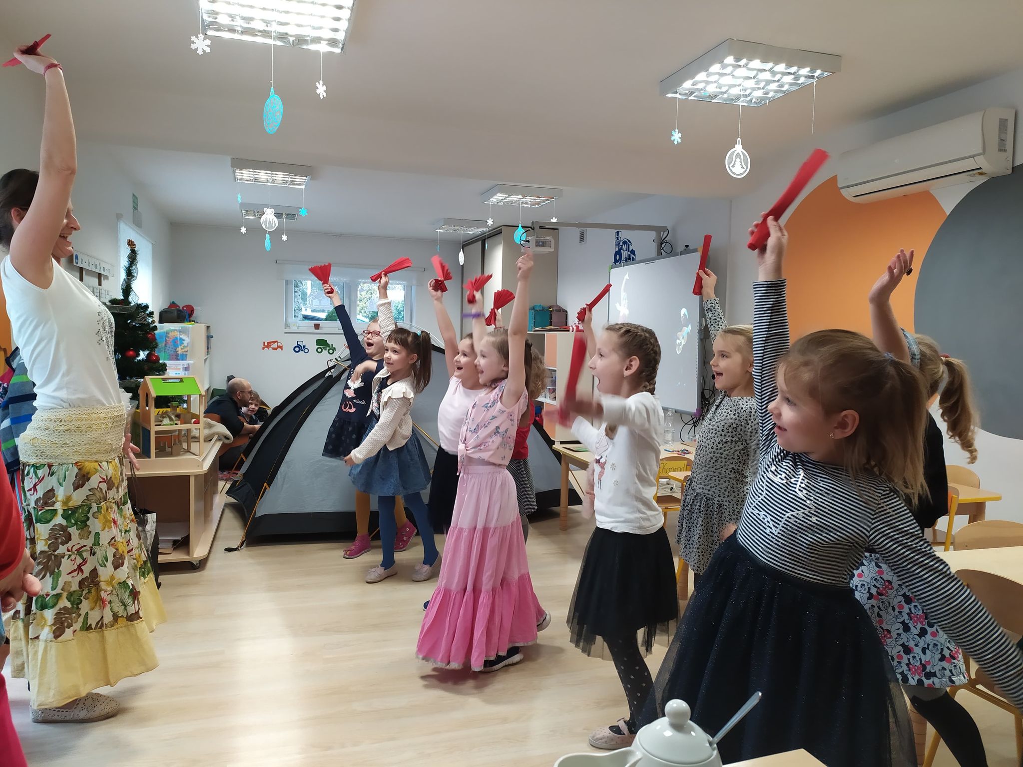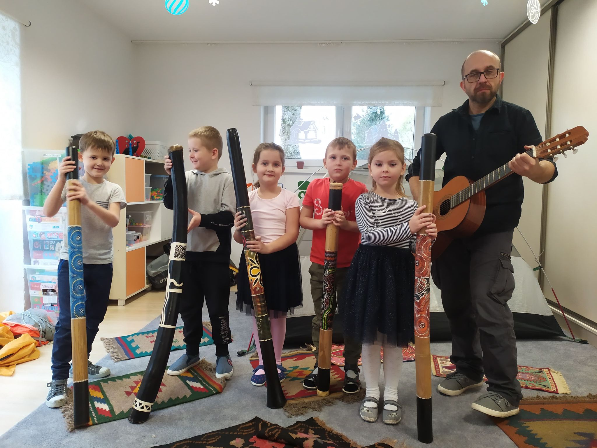 Podczas warsztatów podróżniczych przedszkolaki wzięły udział w wyjątkowej podróży po wszystkich kontynentach, mogąc dotykać emblematów, rekwizytów, budując wioski czy przymierzając egzotyczne stroje z różnych regionów świata. Na warsztatach muzycznych dzieci mogły spróbować zagrać na instrumentach z całego świata i doświadczyć ich brzmienia. Zobaczyły również instrumenty z różnych regionów świata, które poznały podczas warsztatów podróżniczych, takie jak australijskie didgeridoo, tybetańska śpiewająca misa, nikaraguańskie marakasy, estońska okaryna czy marokańska gnaoua.