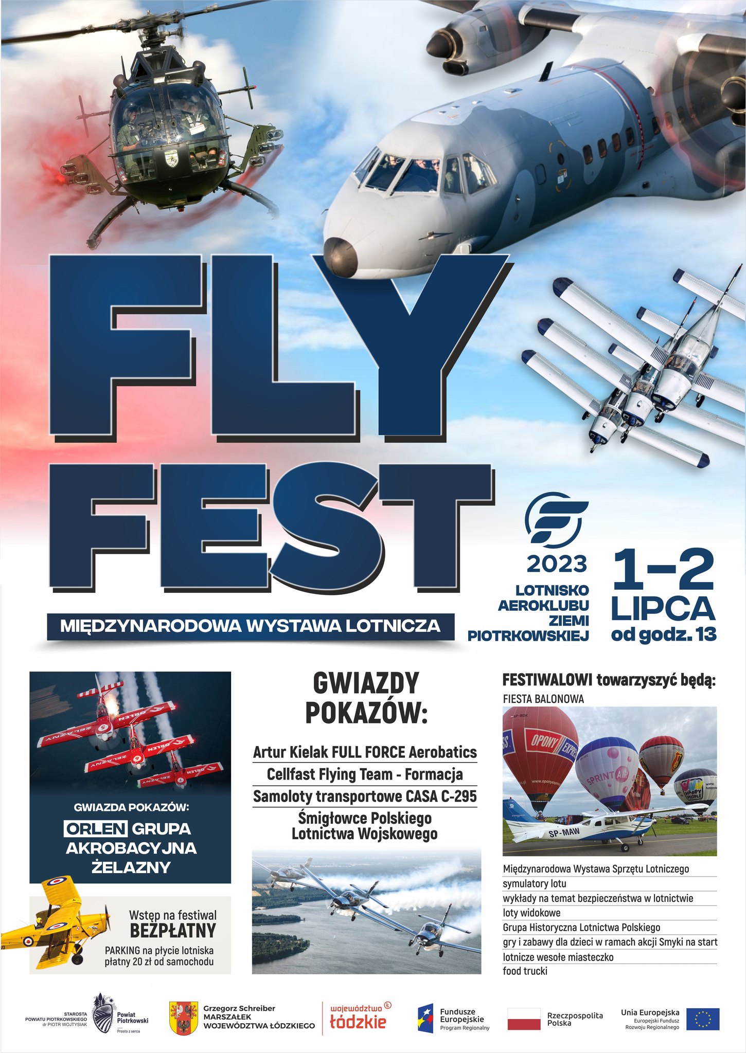 Aeroklub Ziemi Piotrkowskiej, w którym szkolą się miłośnicy lotnictwa z całej Polski, od wielu lat organizuje pokazy lotnicze. – W tym roku na niebie gwiazdami pokazów będzie: genialny Artur Kielak i ORLEN Grupa Żelazny. Ponadto zaprezentują się samoloty LOT Flight Academy, piotrkowski dromader, a także statki powietrzne naszego aeroklubu. W programie także między innymi pokazy śmigłowca BO105 i fiesta balonowa. Na płycie lotniska cały czas działać będzie lotnicze wesołe miasteczko, a także mnóstwo innych atrakcji – zapewnia Marcin Pampuch, dyrektor aeroklubu.