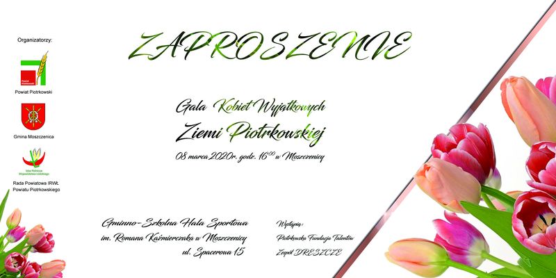 Gala Kobiet Wyjątkowych odbędzie się 8 marca 2020 roku w Gminno – Szkolnej Hali Sportowej w Moszczenicy o godz. 1600.