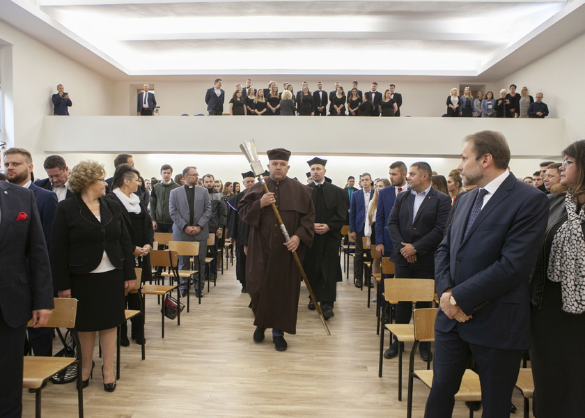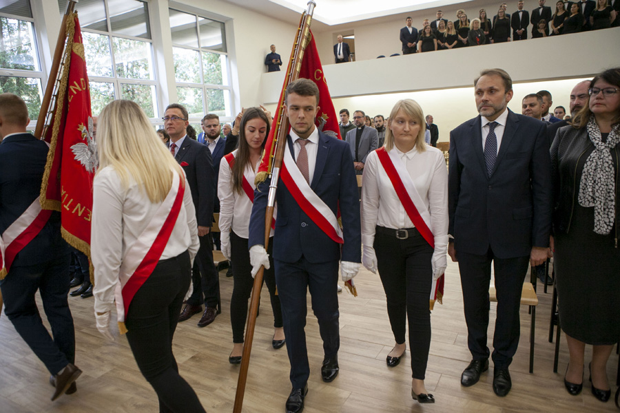Dziś także studenci złożyli ślubowanie a także odebrali indeksy. W uroczystości brał udział między innymi Dariusz Magacz, wicestarosta powiatu, Bernard Matyszewski przewodniczący Rady Powiatu, Adam Karzewnik zastępca prezydenta miasta a także poseł Grzegorz Lorek.