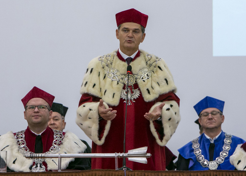 Z kolei w przemówieniu inauguracyjnym prof. dr hab. Jacka Semaniaka, rektora Uniwersytetu Jana Kochanowskiego usłuszeć moglismy między innymi: – Tradycja w życiu każdego człowieka – zarówno w wymiarze indywidualnym, jak również w tym społecznym oraz instytucjonalnym – stanowi jedną z podstawowych wartości. Również w życiu wspólnoty akademickiej odgrywa bardzo istotną rolę. Dlatego też odwołujemy się do tradycji naszej uczelni, inaugurując tym samym nowy rok akademicki – mówił rektor.
