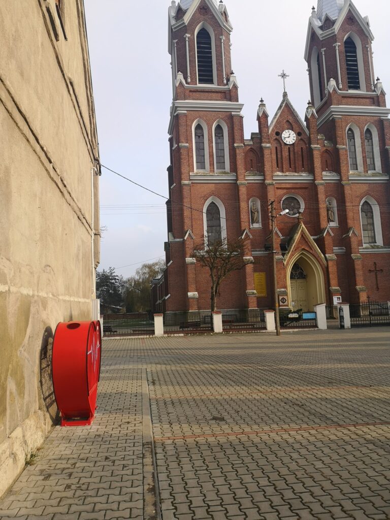 Czerwone pojemniki właśnie w kształcie serca ustawione zostały w trzech miejscach Gminy Rozprza:
