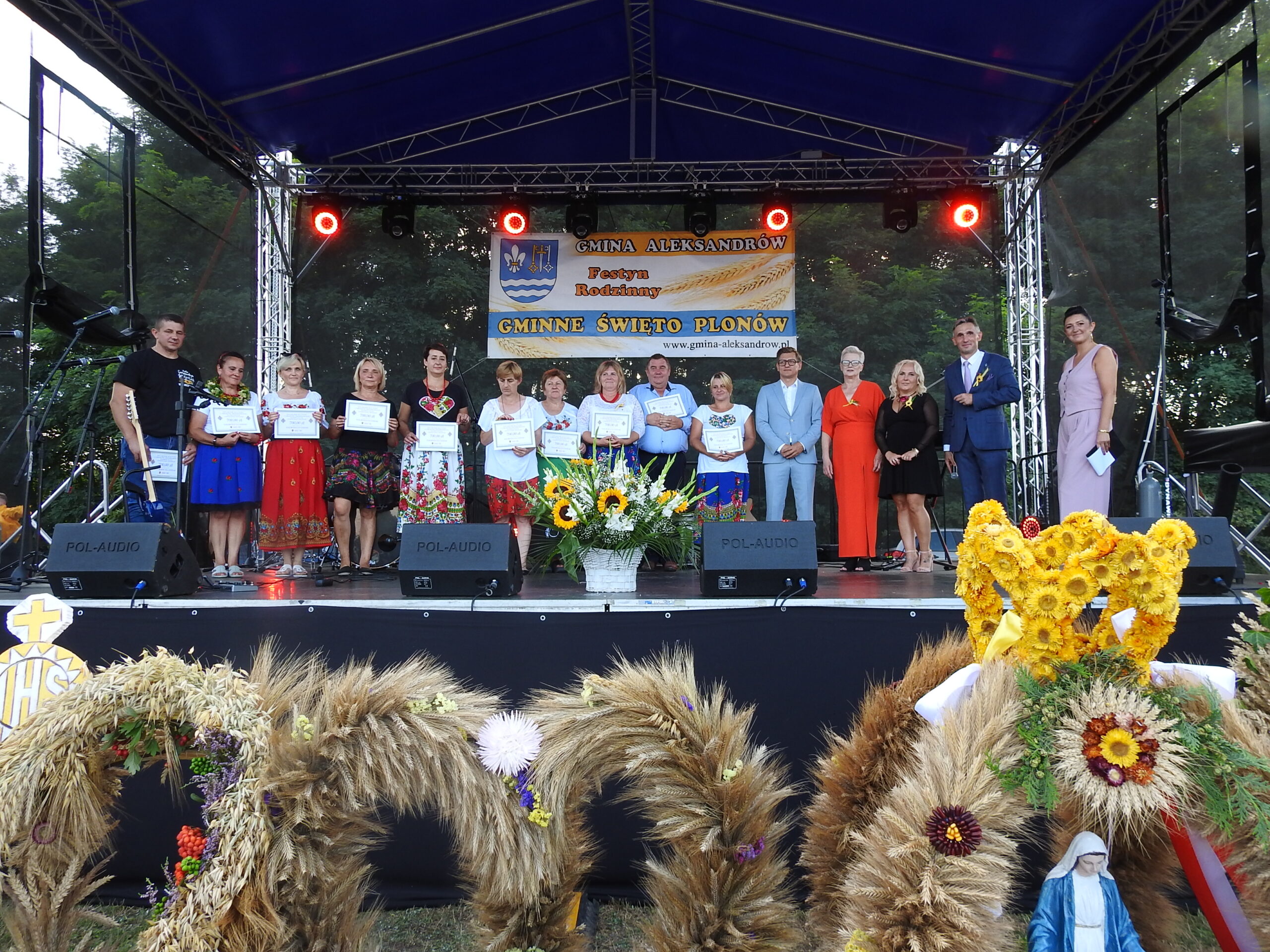 Podczas wydarzenia odbył się również Przegląd Zespołów Ludowych ,,Muzyczne inspiracje Środkowego Nadpilicza” zrealizowany w ramach Festiwalu regionalnego ,,Szlakiem Kultury i Smaków Środkowego Nadpilicza”. Zadanie było współfinansowane z budżetu Samorządu Województwa Łódzkiego. Udział w nim wzięły zespoły ludowe z terenu województwa łódzkiego. Na scenie zaprezentowali się również podopieczni wraz z pracownikami Środowiskowego Domu Samopomocy w Dąbrówce. W ramach projektu odbyła się także prezentacja potraw kulinarnych ,,Łódzkie smaki i przysmaki” przygotowana przez Koła Gospodyń Wiejskich z terenu gminy Aleksandrów. Został również rozstrzygnięty konkurs na najładniejszy wieniec dożynkowy. Wręczenia nagród i podziękowań dokonali: Paweł Mamrot – wójt Gminy, Jolanta Rogozińska – przewodnicząca Rady Gminy Aleksandrów, Daniel Jasion zastępca wójta oraz Michał Małecki- członek Zarządu Powiatu Piotrkowskiego. Zwycięzcą tegorocznego konkursu zostało sołectwo Aleksandrów, II miejsce przypadło dla sołectwa Jaksonek, III – dla sołectwa Janikowice.