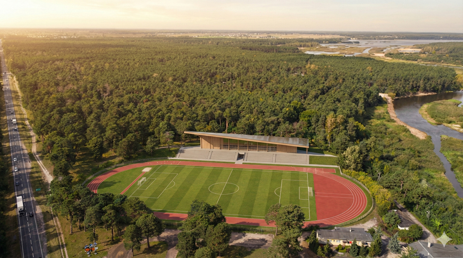 – Nie zapominamy też o „polance”. Nie przyznano nam dotacji na ten cel, ale odwołaliśmy się od tej decyzji. Niezależnie, zamierzamy realizować ten projekt etapami. Pierwszym ma być budowa nowoczesnej szatni i zaplecza przy znajdującym się tam boisku. Niebawem złożymy wniosek dotacyjny w ramach pilotażowego programu, finansowanego z budżetu Ministerstwa Sportu i Turystyki – Szatnia na medal – zapewniają w sulejowskim magistracie. Gmina zamierza także uporządkować brzeg Pilicy, wykorzystując dofinansowanie w ramach Miejskiego Obszaru Funkcjonalnego (załączona wizualizacja ma charakter poglądowy, a szatnia, która będzie pierwszym elementem tego projektu docelowo będzie mniejsza i może wyglądać inaczej).
