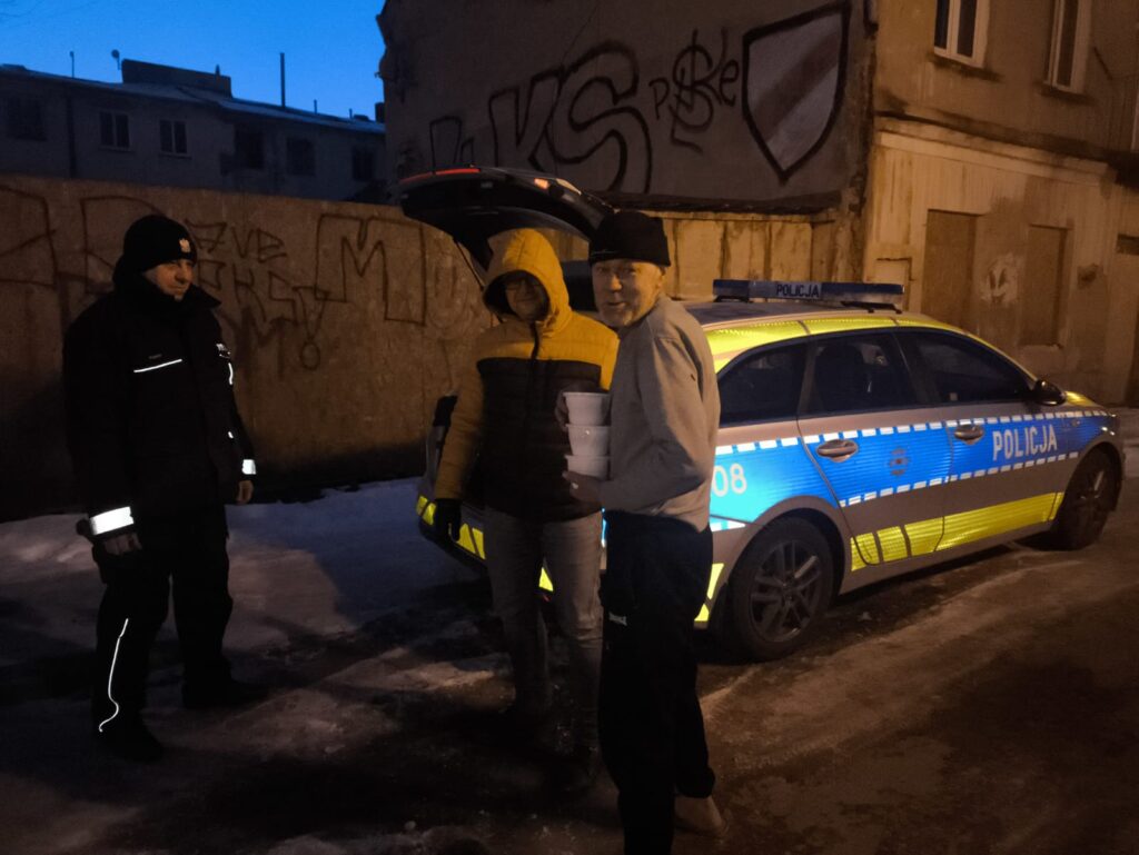 Służby regularnie odwiedzają pustostany w których chronią się osoby w kryzysie bezdomności. Do tej pory potrzebujący mogli liczyć na gorącą herbatę. Teraz pomoc została rozszerzona – podczas wczorajszego wieczornego patrolu każda napotkana osoba otrzymała pożywną, gorącą zupę.