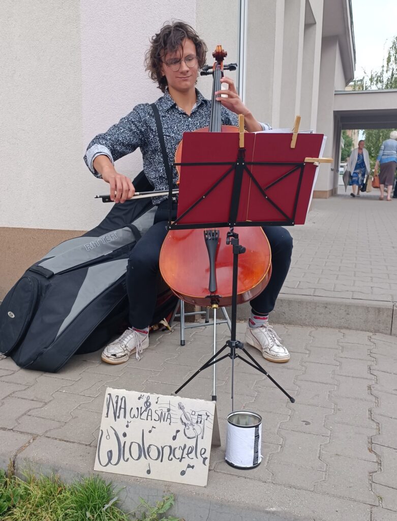 Są różne sposoby na spełniania swoich marzeń. Pasją Mikołaja Lewandowskiego jest gra na wiolonczeli. Nie ma swojego instrumentu, dlatego grając na tym wypożyczonym ze szkoły muzycznej, próbuje zarobić na kupno własnego. W piątek spotkaliśmy go na targowisku miejskim przy ulicy Targowej. W sobotę będzie grał na giełdzie przy Dmowskiego, a w niedzielę na marszu Human-Machine. Może warto wesprzeć pasję młodego człowieka? Posłuchajcie rozmowy z Mikołajem.