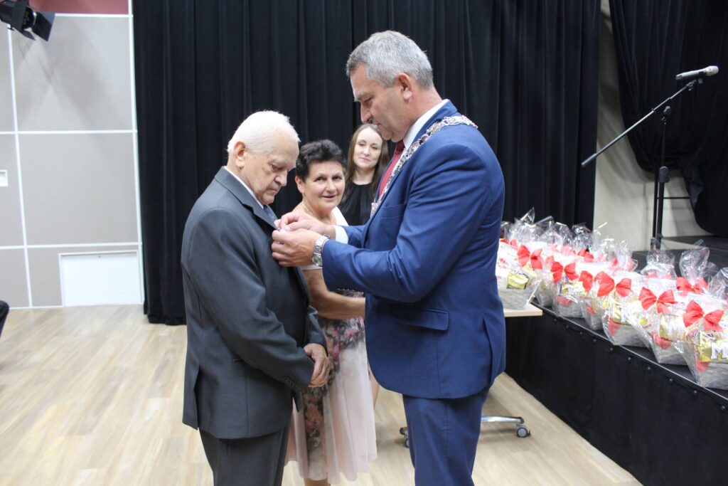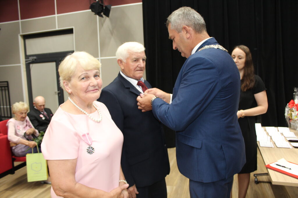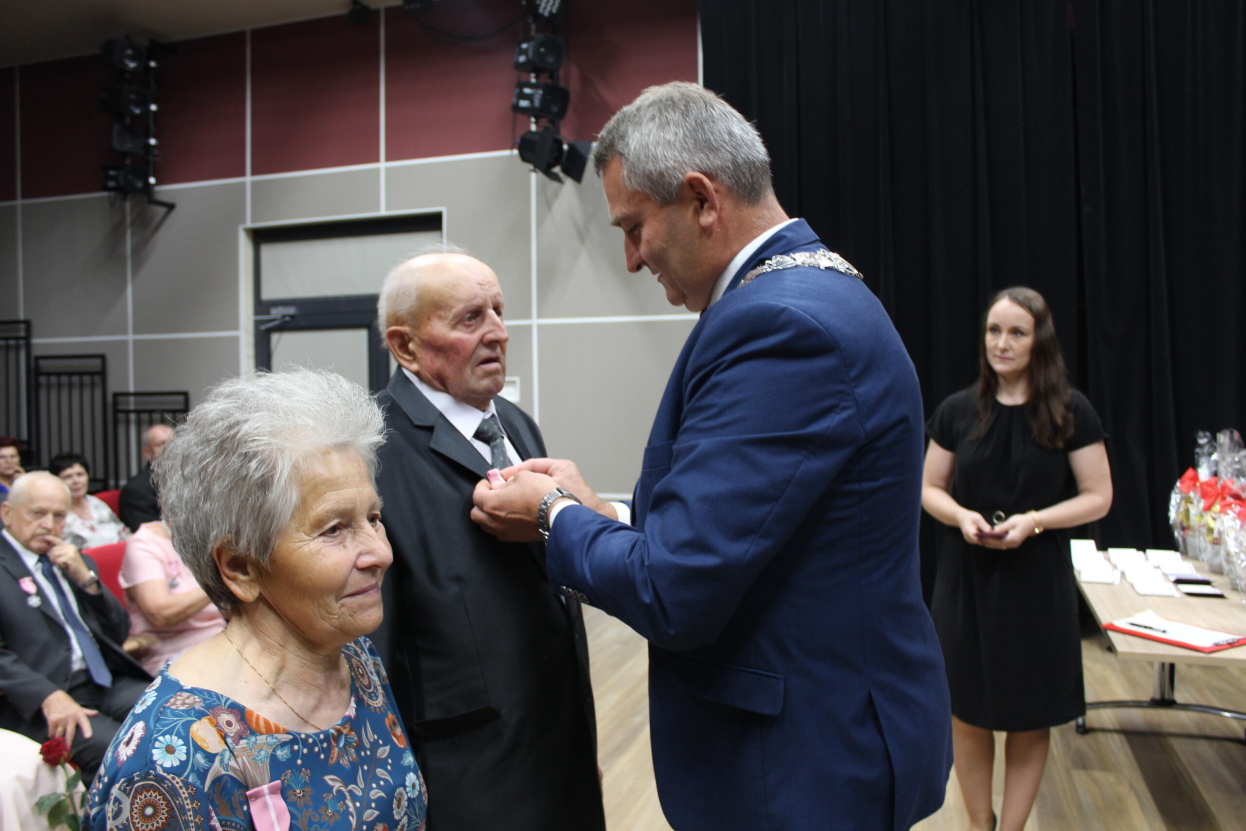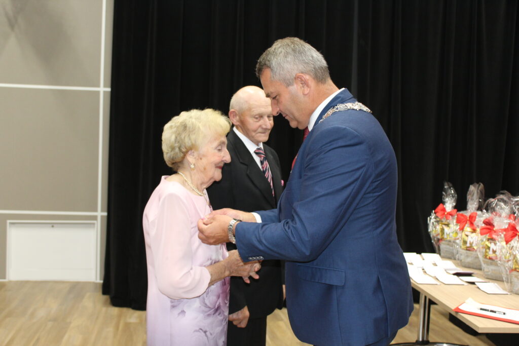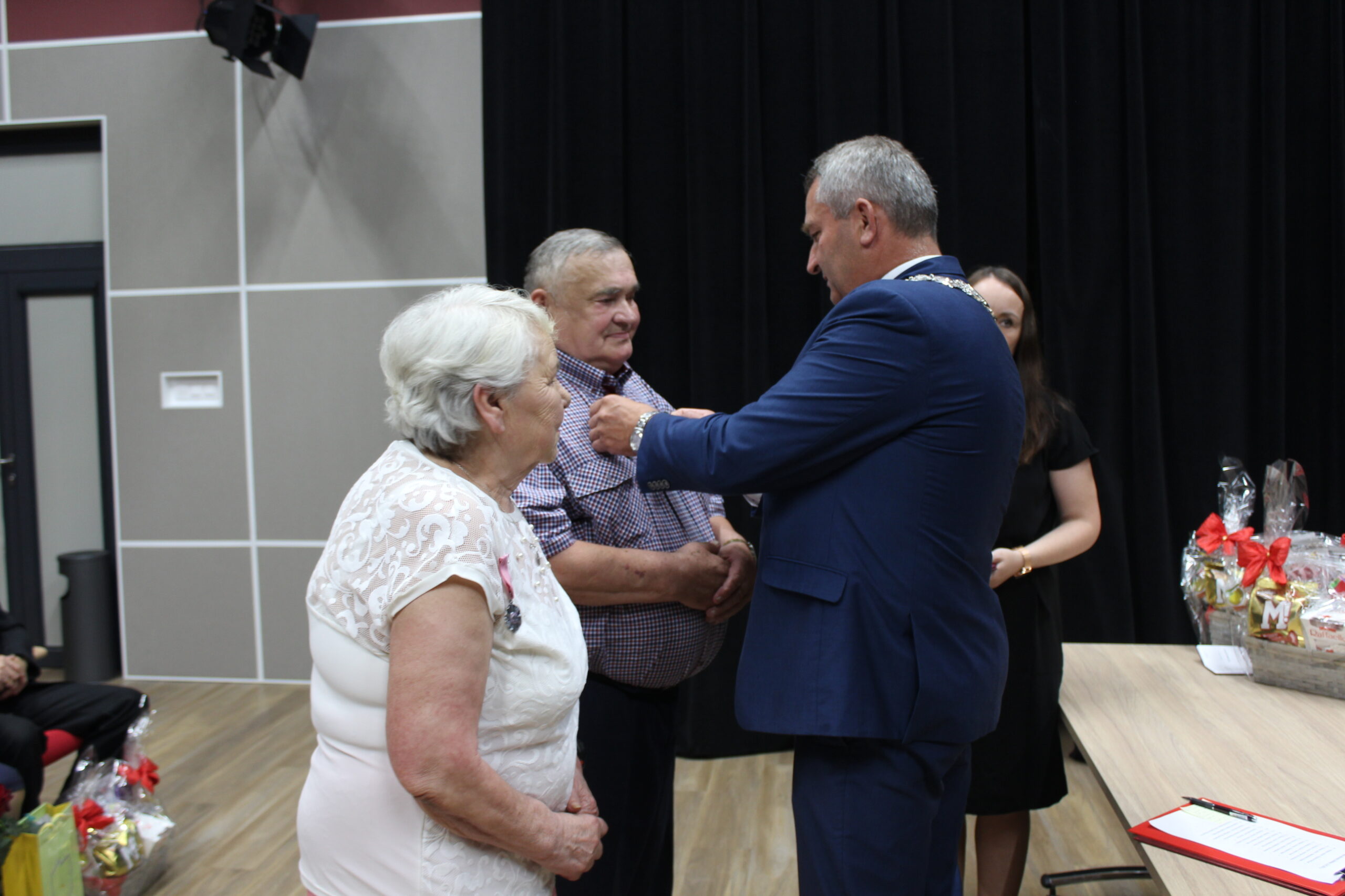 Wójt Krzysztof Kuliński złożył dostojnym jubilatom serdeczne gratulacje i słowa uznania za zgodne i długie pożycie małżeńskie. Przyznał, że jest to wyjątkowe świadectwo dla młodych pokoleń oraz dowód na siłę i dojrzałość, a także niezwykłą wrażliwość na drugiego człowieka. – To wzór do naśladowania dla młodego pokolenia, jak iść przez życie, przezwyciężając trudności oraz wspólnie cieszyć się życiem – mówił wójt.