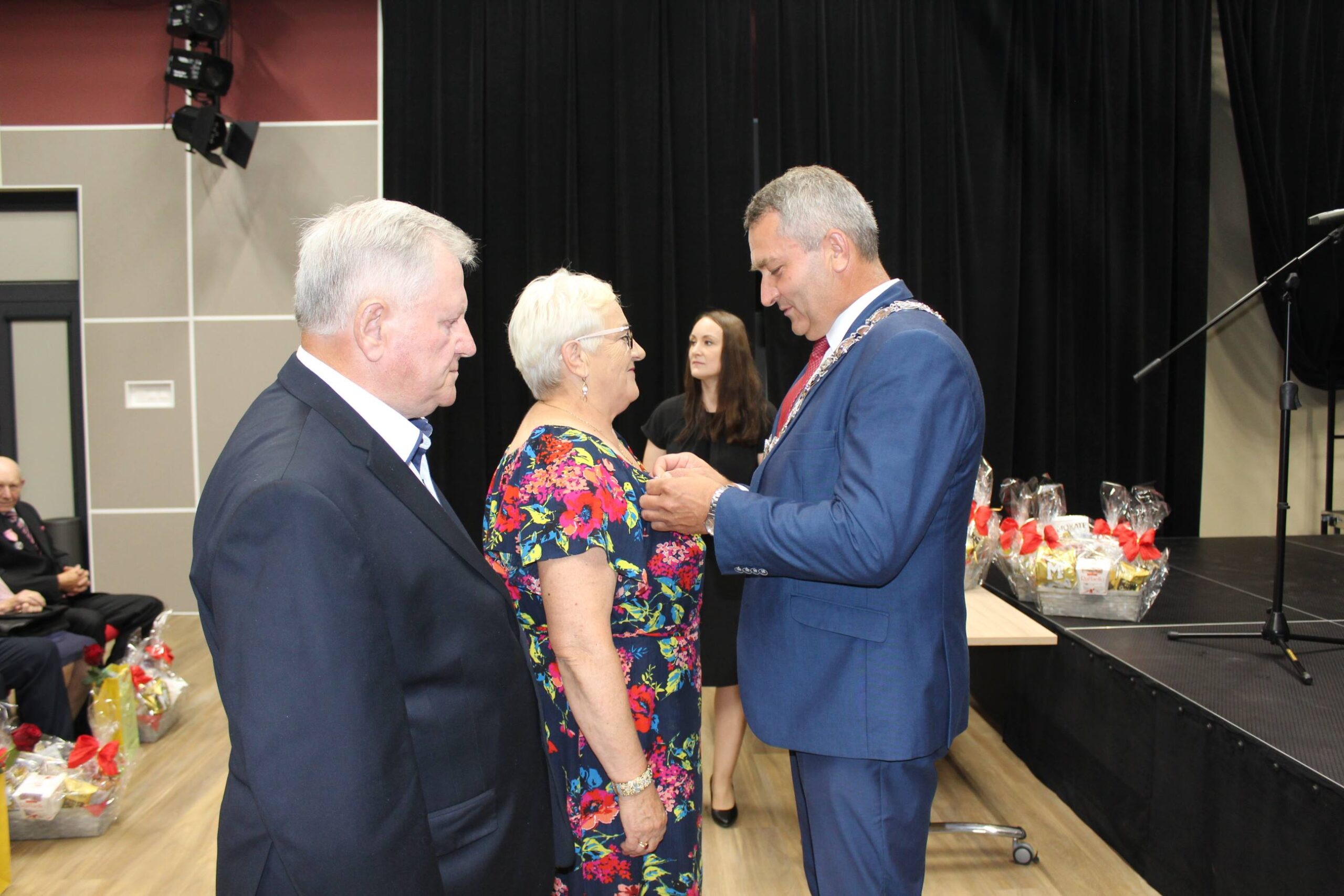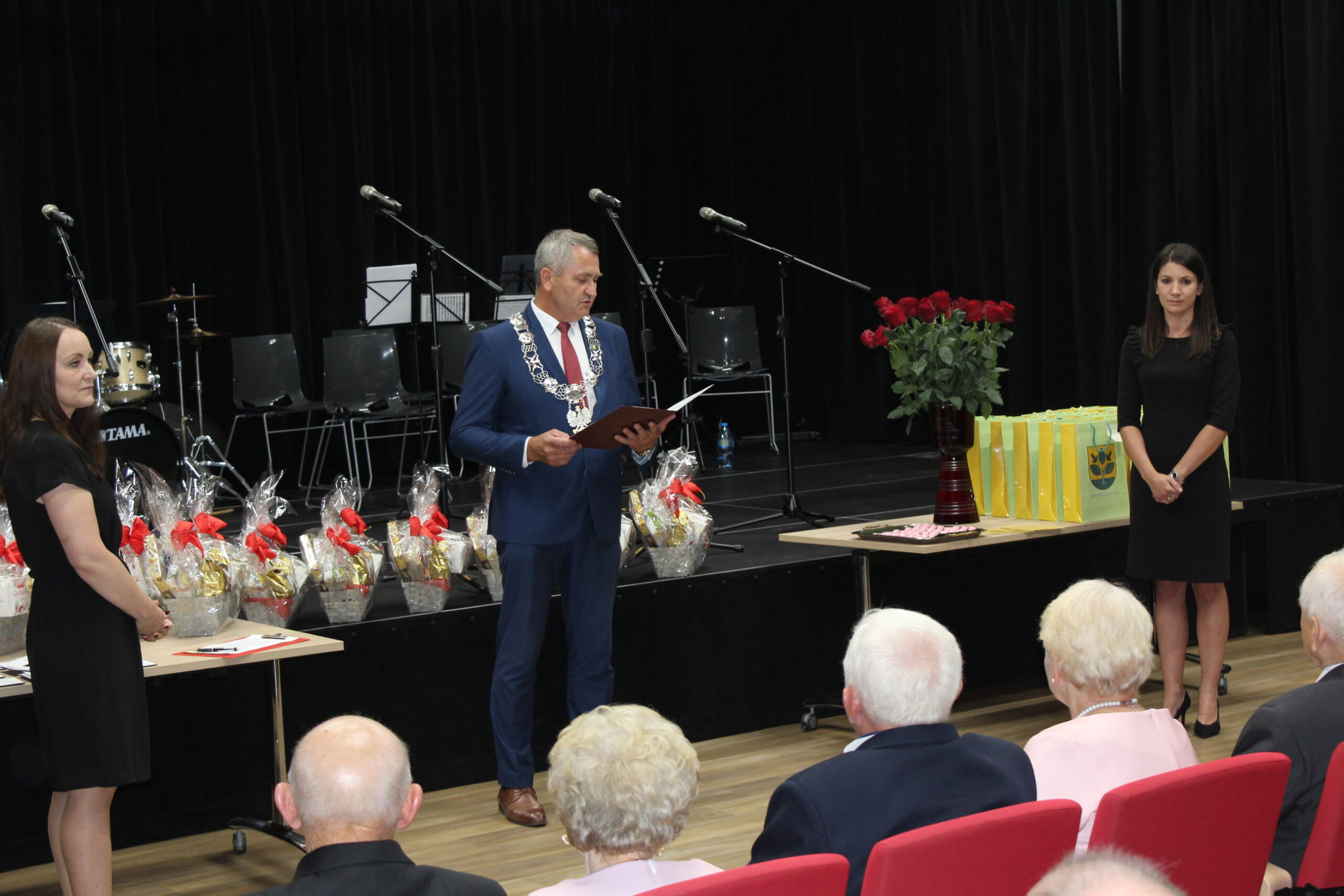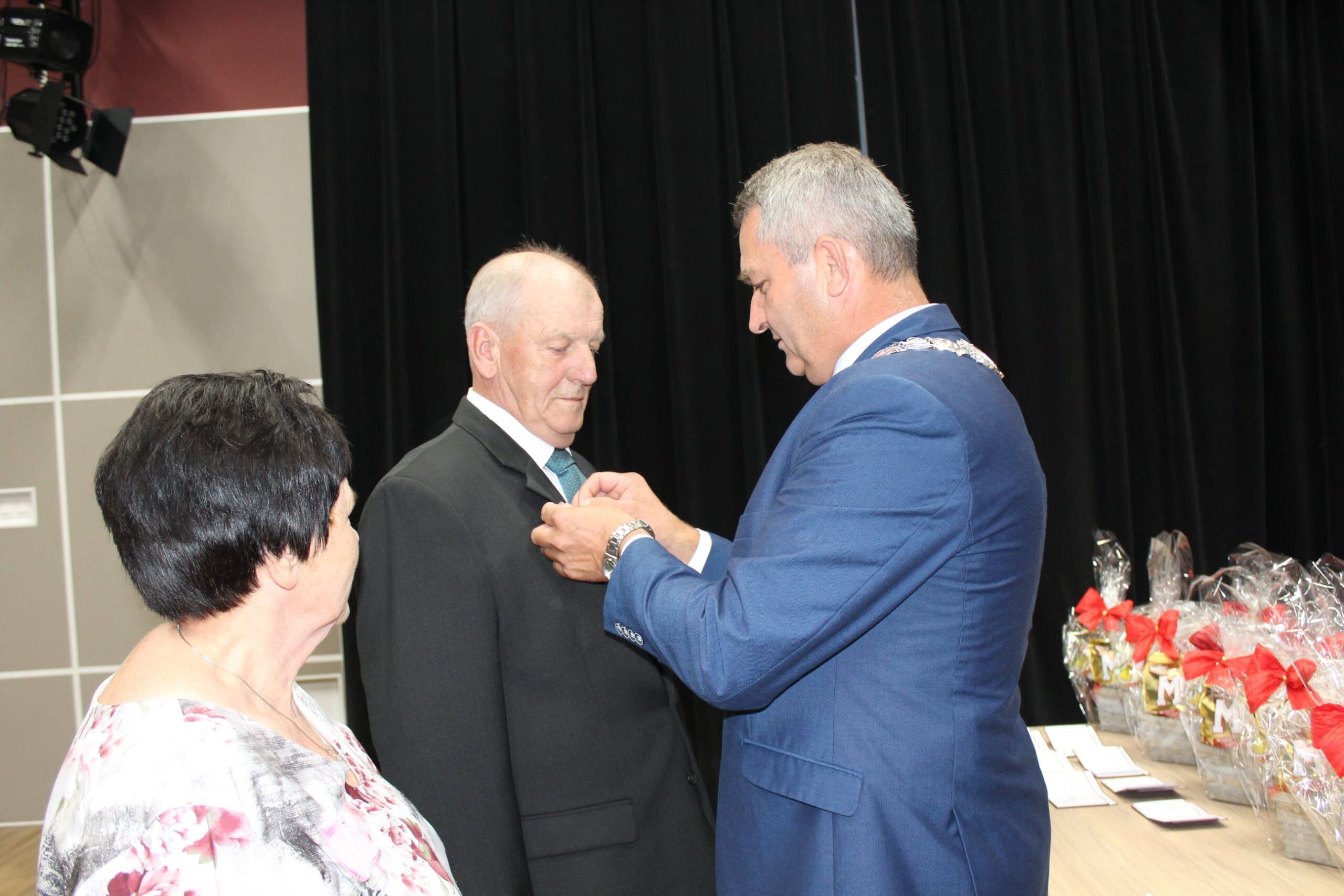 Wójt Krzysztof Kuliński złożył dostojnym jubilatom serdeczne gratulacje i słowa uznania za zgodne i długie pożycie małżeńskie. Przyznał, że jest to wyjątkowe świadectwo dla młodych pokoleń oraz dowód na siłę i dojrzałość, a także niezwykłą wrażliwość na drugiego człowieka. – To wzór do naśladowania dla młodego pokolenia, jak iść przez życie, przezwyciężając trudności oraz wspólnie cieszyć się życiem – mówił wójt.