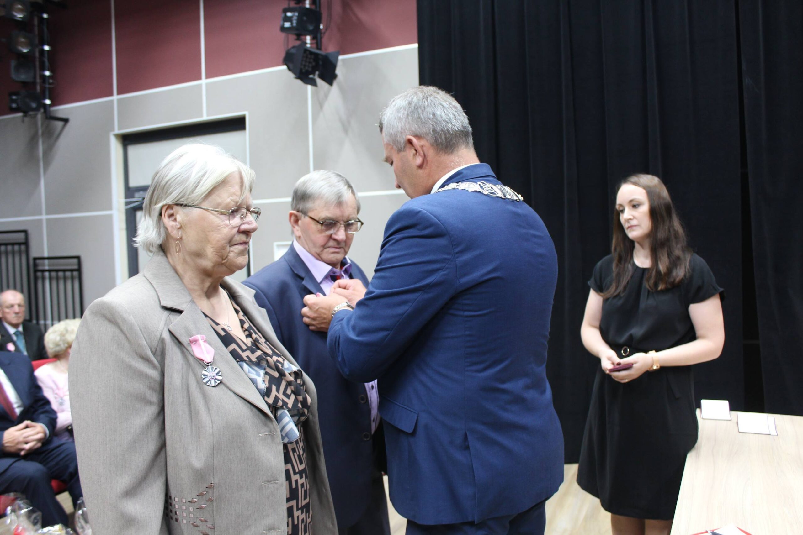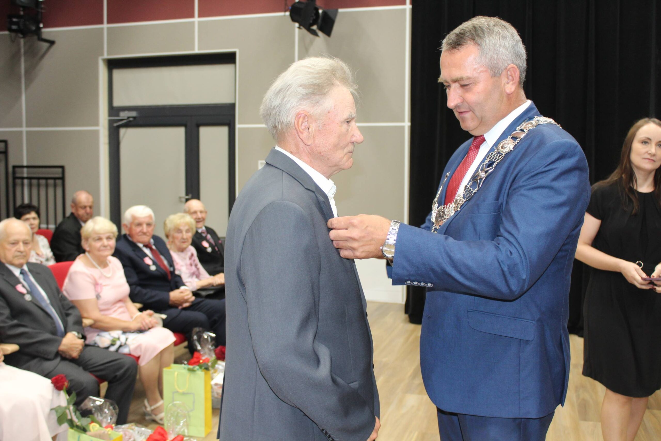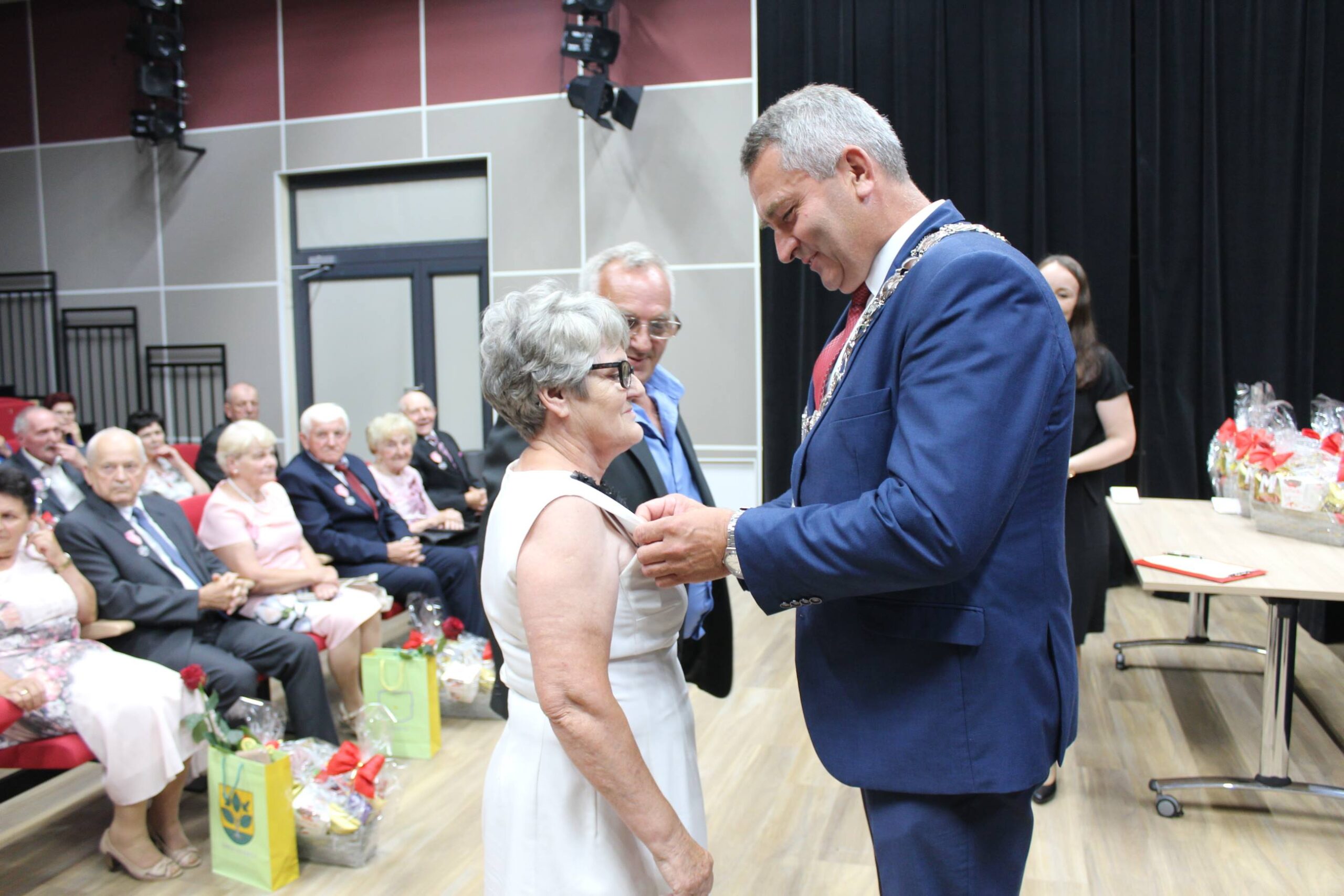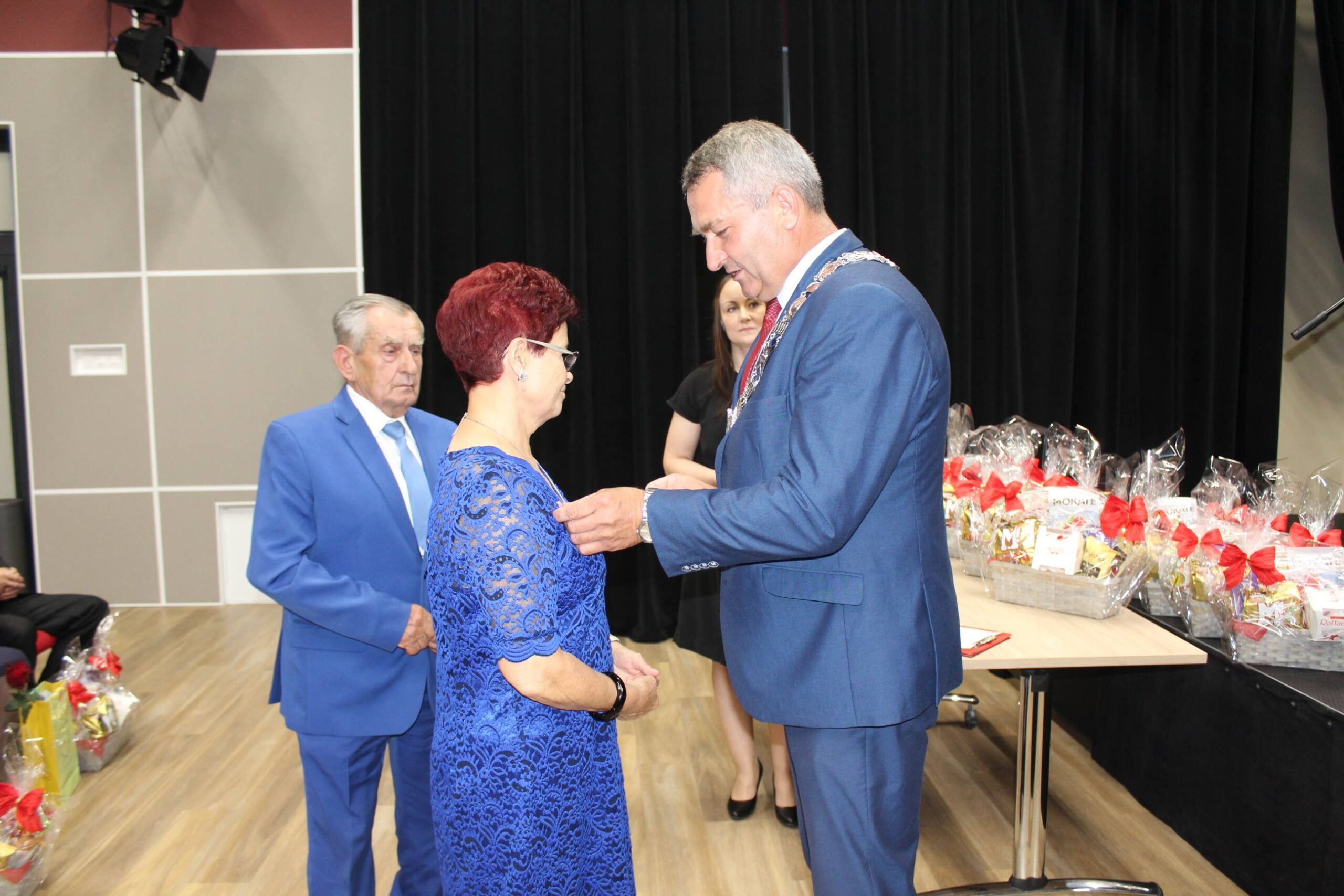 Wójt Krzysztof Kuliński złożył dostojnym jubilatom serdeczne gratulacje i słowa uznania za zgodne i długie pożycie małżeńskie. Przyznał, że jest to wyjątkowe świadectwo dla młodych pokoleń oraz dowód na siłę i dojrzałość, a także niezwykłą wrażliwość na drugiego człowieka. – To wzór do naśladowania dla młodego pokolenia, jak iść przez życie, przezwyciężając trudności oraz wspólnie cieszyć się życiem – mówił wójt.