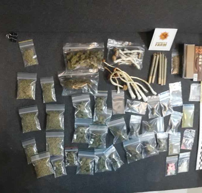 W tym samym pokoju policjanci zabezpieczyli torby z suszem roślinnym, którego wstępne badanie testerem narkotykowym dało wynik pozytywny w kierunku marihuany. Do laboratorium kryminalistycznego trafią też zabezpieczone przez policję środki odurzające, między innymi grzybki halucynogenne, 10 sztuk listków LSD, substancje psychotropowe tak zwane MDMA, w formie tabletek, kryształków i proszku i wreszcie nasiona konopi indyjskich różnych odmian.