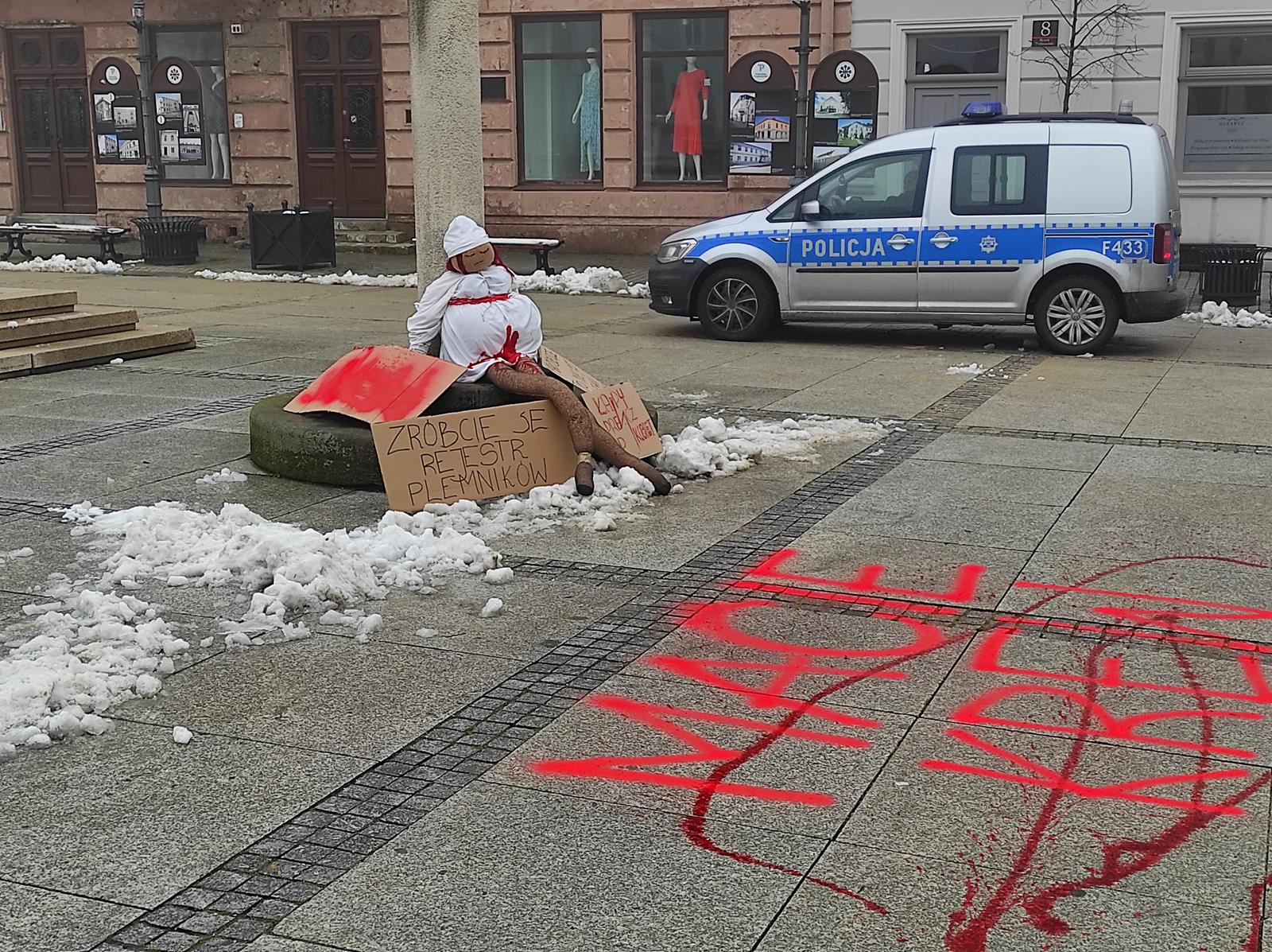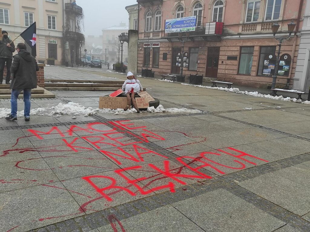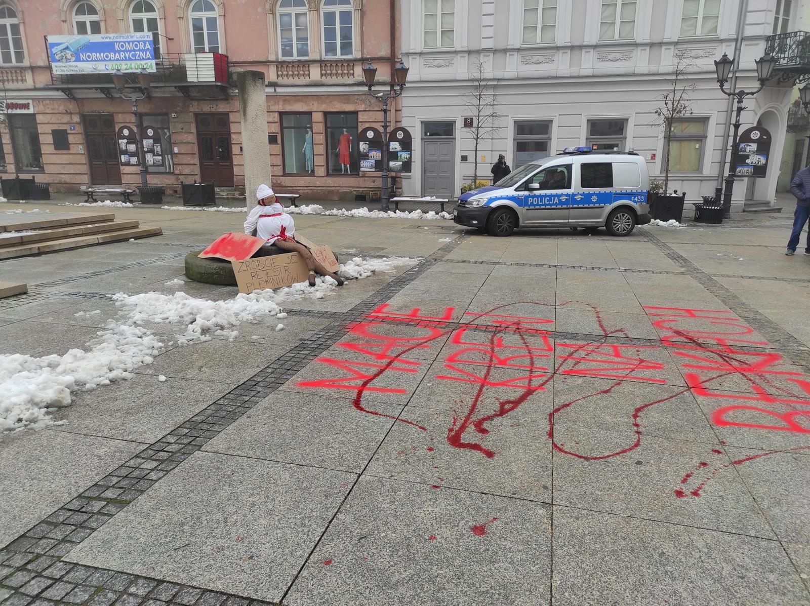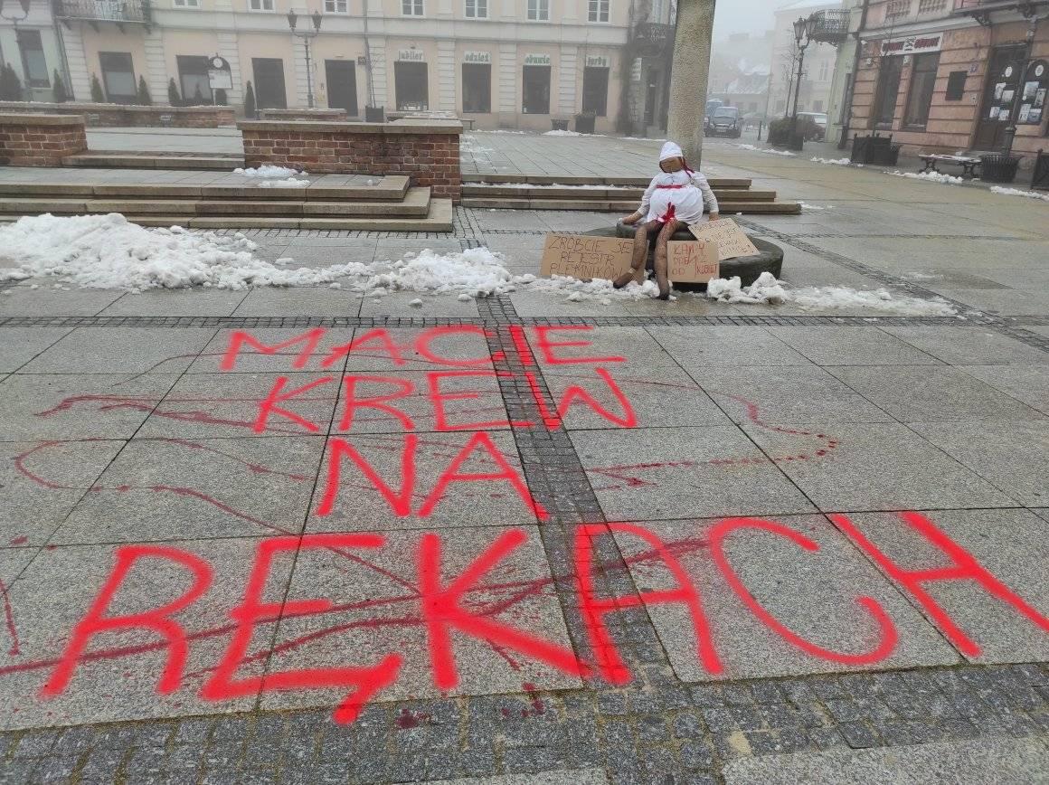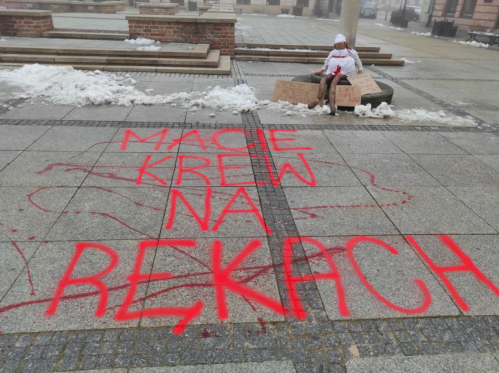 W niedzielne przedpołudnie „Piotrkowski strajk kobiet” przed piotrkowskim biurem PiS zorganizował happening „Macie krew na rękach”.