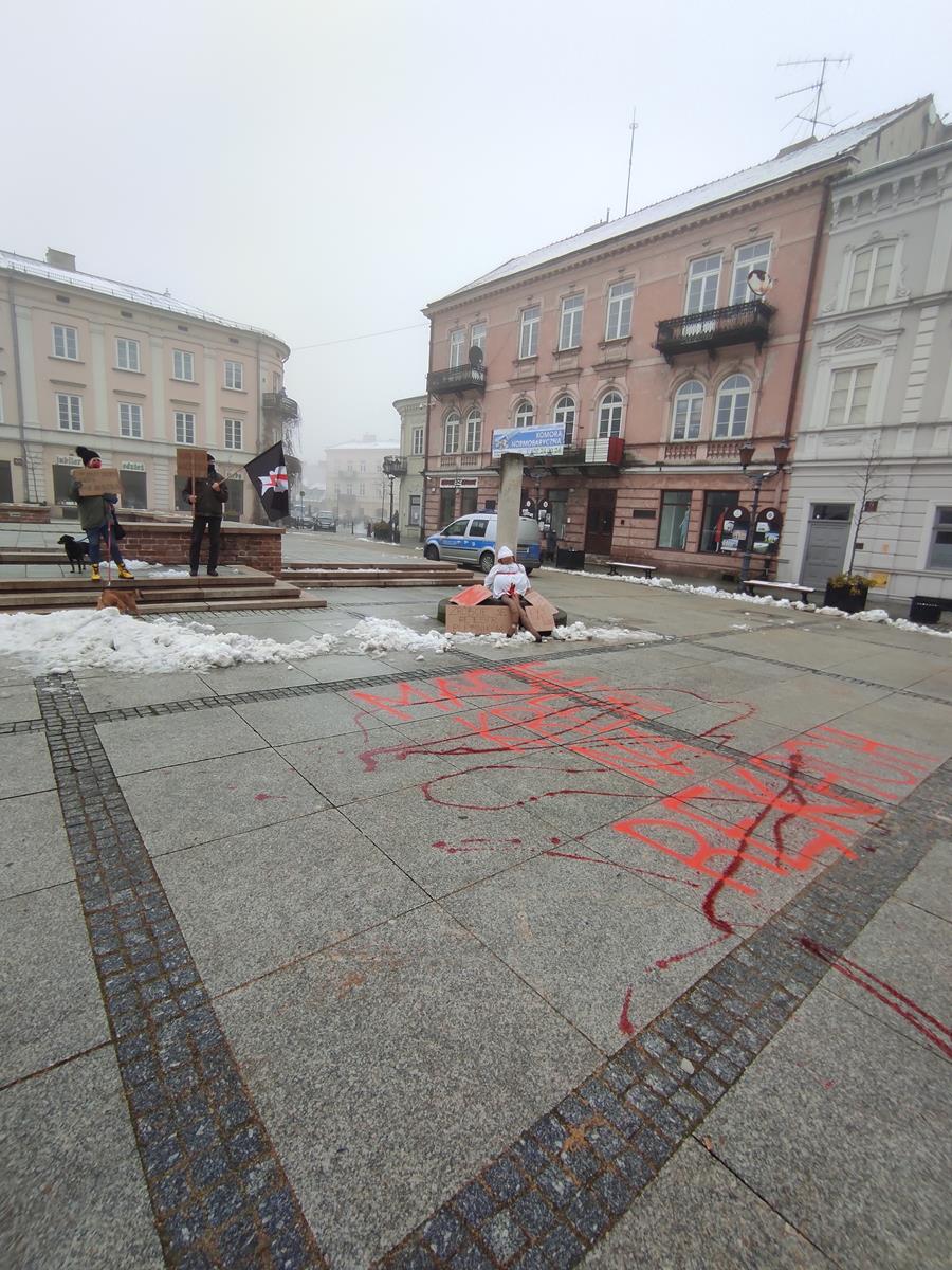 – Zbliża się grudzień, powietrze tężeje. Kreda i sztuczna krew stygnie szybko. Niech przypomina wam krew, którą macie na rękach. Tym razem bez zniczy i łez. Tym razem z ostrzeżeniem, które będzie wam się śnić po nocach, dopóki nie oprzytomniejecie. – powiedziały organizatorki happeningu.