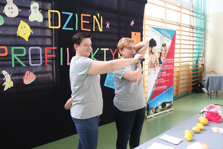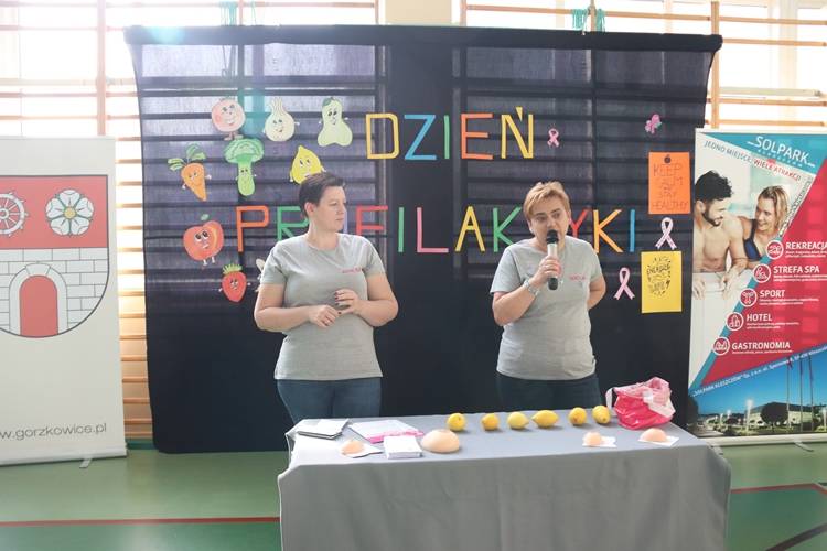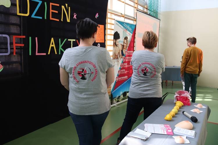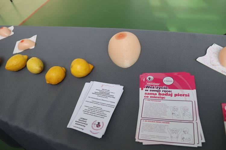 Kolejny punkt dotyczył profilaktyki raka piersi, który poprowadziły panie ze Stowarzyszenia Amazonek „Kamilki” z Piotrkowa Trybunalskiego. Celem tego spotkania było wyrobienie nawyku wykonywania samobadania piersi przez dziewczęta, zachęcenie do regularnych badań swoich piersi oraz edukacja młodych osób w zakresie zmniejszania ryzyka występowania tej choroby. Amazonki pokazały jak należy badać piersi oraz jak należy o nie dbać. W dalszej części spotkania dziewczęta miały możliwość nauki samobadania piersi na fantomach.