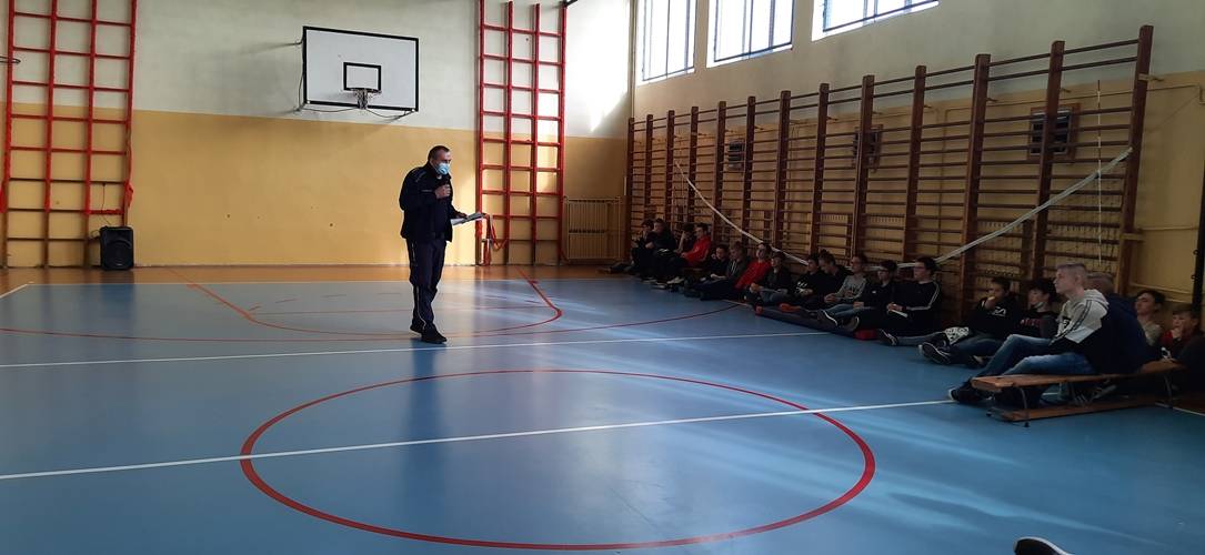 Krzysztof Kaczmarek dzielnicowy z Komisariatu Policji w Gorzkowicach poruszył temat zachowań agresywnych wśród dzieci i młodzieży w gminie Gorzkowice. Tematem pogadanki była demoralizacja, odpowiedzialność prawna nieletnich za popełnione czyny karalne, konsekwencje prawne wynikające z naruszenia przepisów ustawy o wychowaniu w trzeźwości i przeciwdziałaniu alkoholizmowi oraz ustawy o przeciwdziałaniu narkomanii. Uczestnikami tej prelekcji byli chłopcy z klas VII i VIII.