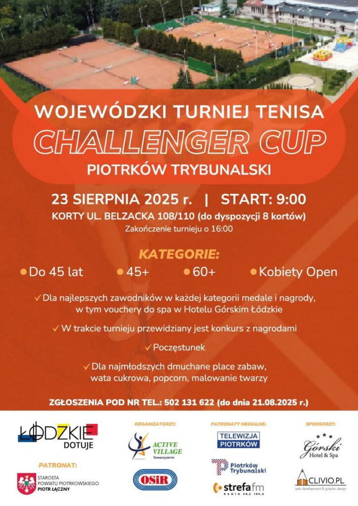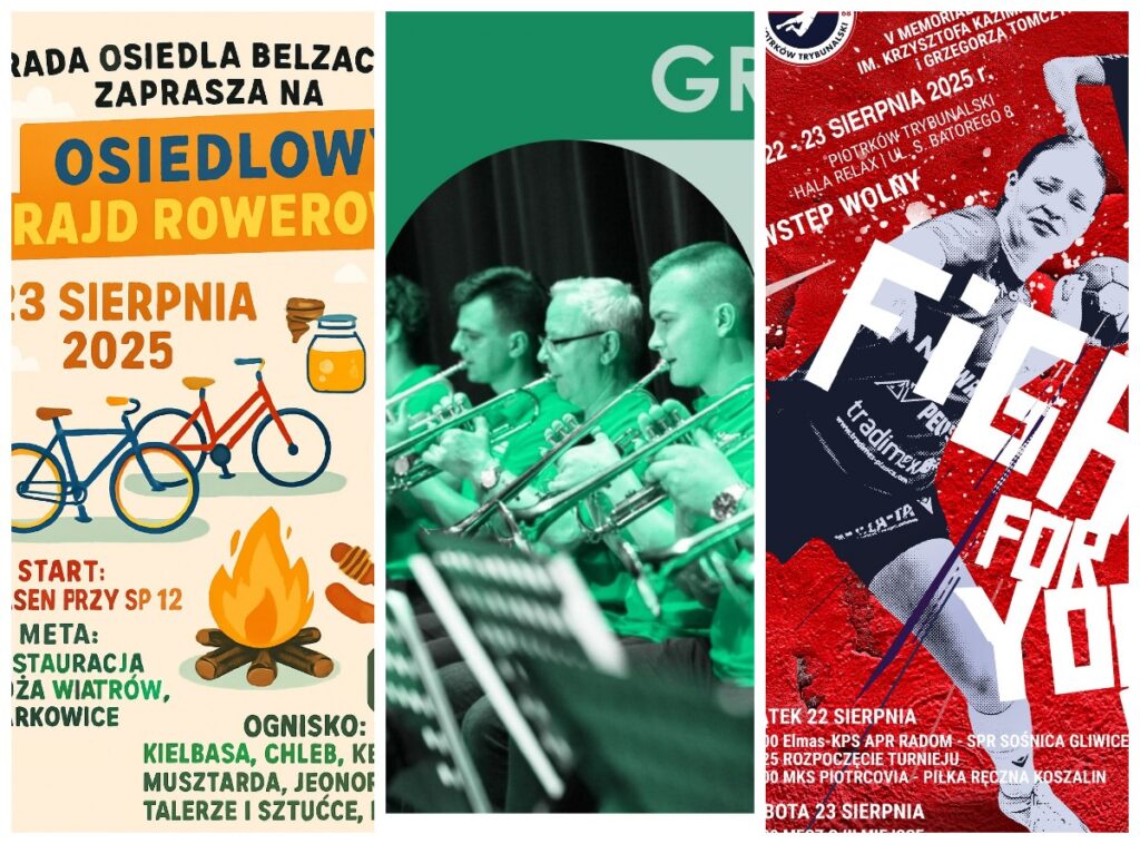 Wojewódzki Turniej Tenisa, koncert Miejskiej Orkiestry Dętej, rajdy i wycieczki rowerowe czy spacer z historią w tle to tylko niektóre propozycje na przedostatni weekend sierpnia w Piotrkowie  Trybunalskim. Sprawdź, co będzie się działo – szczegóły na plakatach!