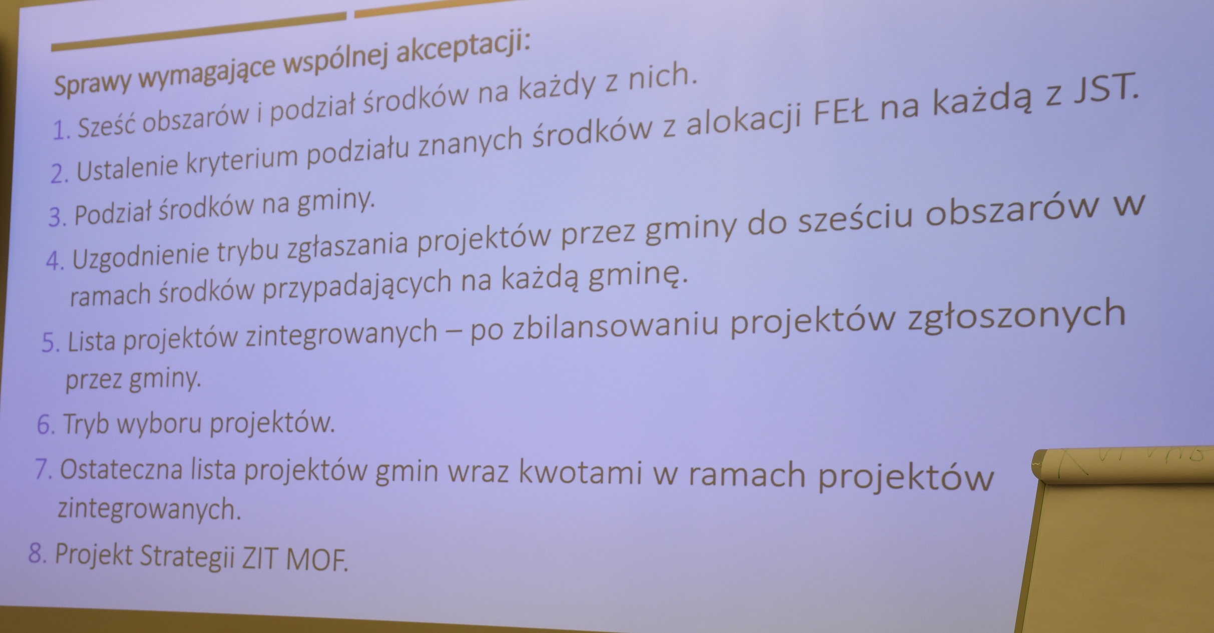Podczas obrad opracowywano założenia do strategii rozwoju dla MOFu do 2027 roku. Dokument będzie zawierał wszystkie zintegrowane projekty, na które będzie możliwość pozyskania dofinansowania w trybie bezkonkursowym.