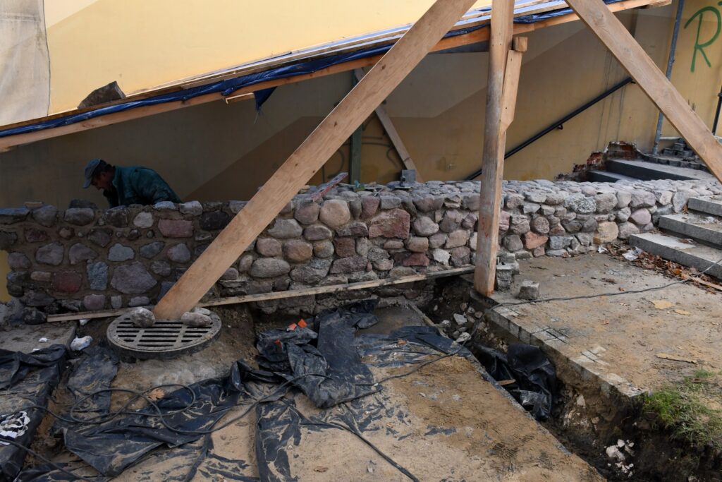 – Obecnie odnawiany jest kamienno-ceglany wątek muru. Usunięte zostały już niepoprawne uzupełnienia oraz stare przemurowania. Trwa wymiana części licówki oraz renowacja spoin – informują urzędnicy z Biura Inwestycji i Remontów. – Dodatkowo w ramach inwestycji schody betonowe zostaną zamienione na stopnie z bloków granitowych, wykonany zostanie remont poręczy stalowej oraz balustrady wraz z rekonstrukcją brakujących i odłamanych metalowych elementów. – mówią.