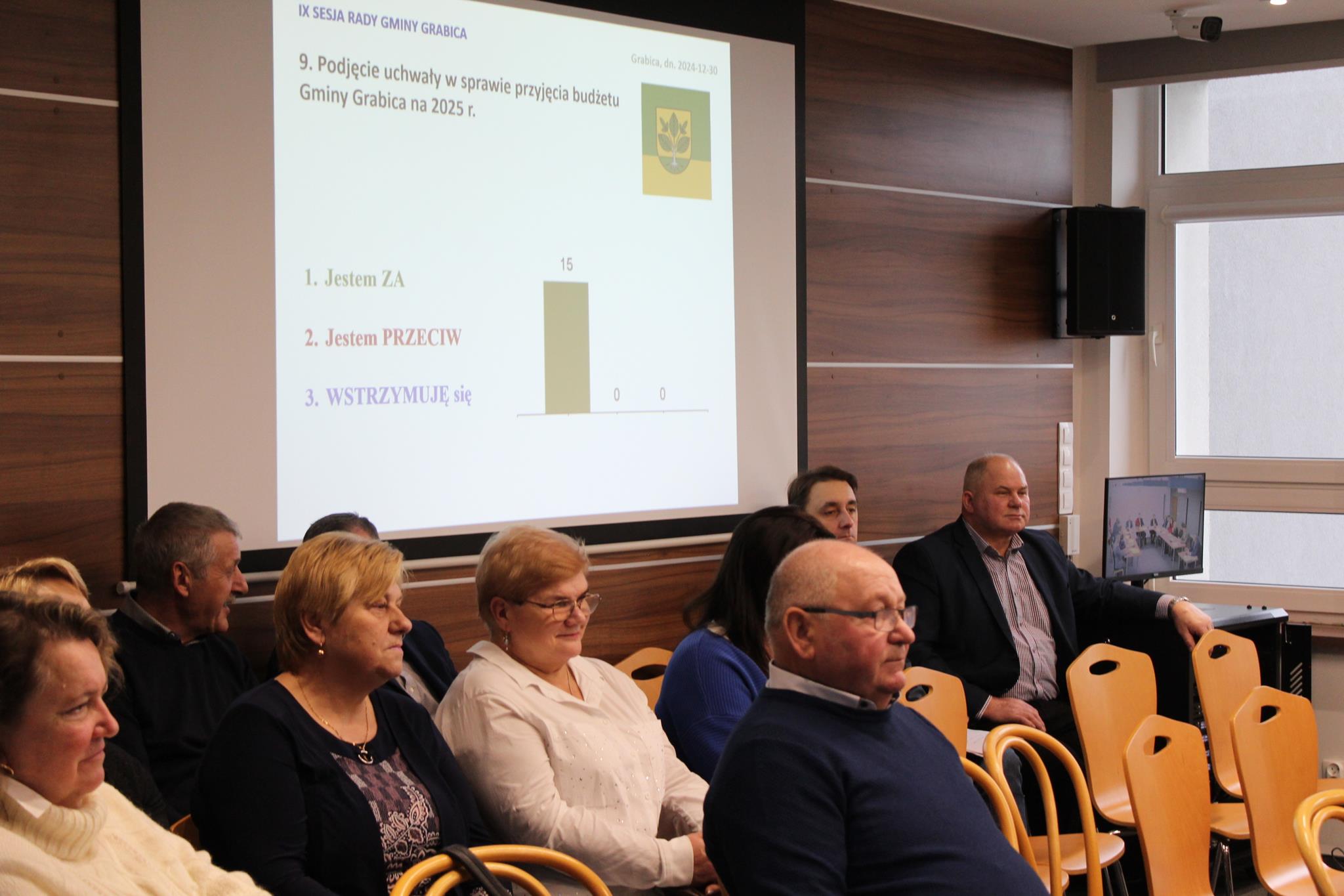 Projekt tej uchwały przygotowany przez wójta gminy Grabica Krzysztofa Kulińskiego, pozytywnie zaopiniowany przez komisje stałe oraz Regionalną Izbę Obrachunkową został jednogłośnie uchwalony przez radnych. Zgodnie z planem finansowym, gminne dochody wyniosą nieco ponad 60 mln zł, a wydatki 66,8 mln zł.