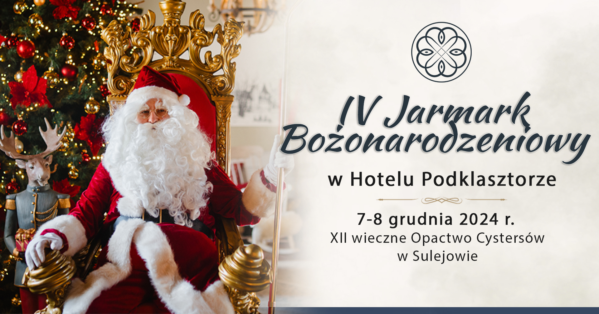 Hotel Podklasztorze oraz miasto i gmina Sulejów zapraszają na IV Jarmark Bożonarodzeniowy – „Świąteczna kraina cudów w Hotelu Podklasztorze” To jeden z najlepszych Jarmarków Bożonarodzeniowych w Województwie Łódzkim!
