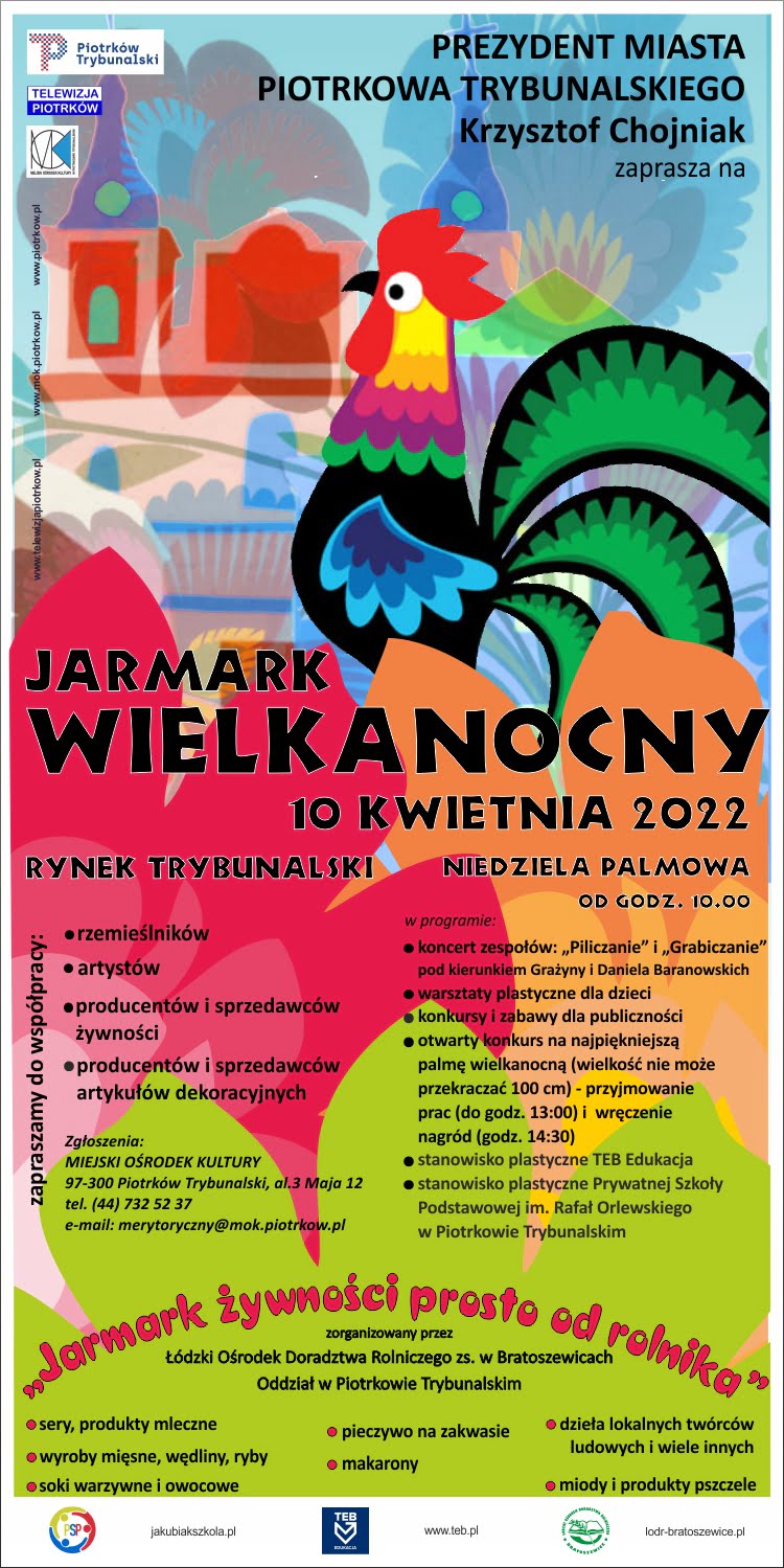 Konkurs na najpiękniejszą palmę, konkursy i warsztaty dla dzieci, występy artystyczne oraz stoiska kupieckie – to atrakcje tegorocznego Jarmarku Wielkanocnego, który w Niedzielę Palmową odbędzie się w Rynku Trybunalskim.