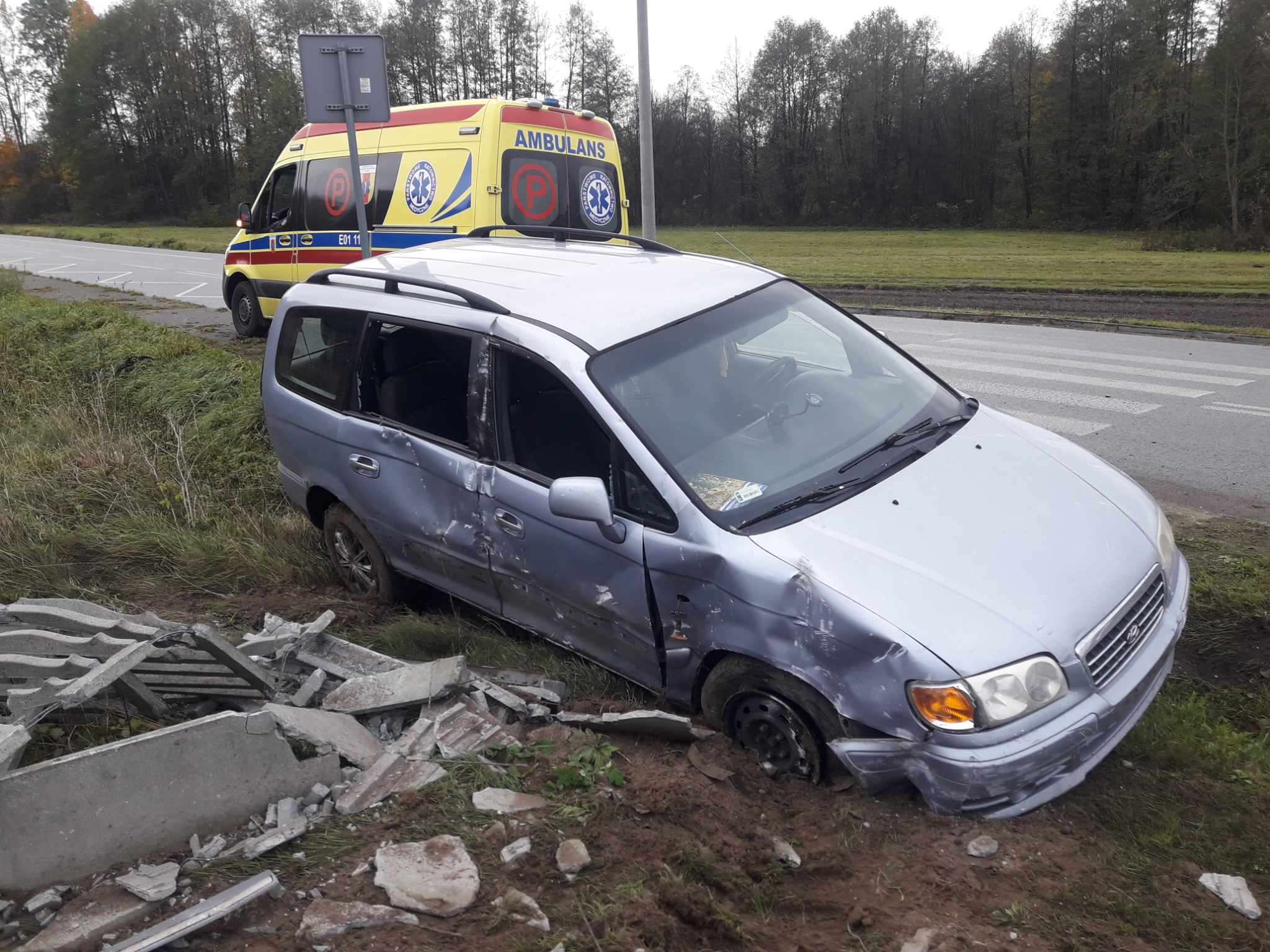 Prawdopodobnie nadmierna prędkość mogła być przyczyną zderzenia osobówki z betonowym płotem. W Bryszkach tuż przed zakrętem, kierująca Hyundaiem wypadła z drogi i uderzyła w ogrodzenie. Bok pojazdu został całkowicie rozbity, podobnie jak kilka przęseł betonowej konstrukcji. Na szczęście nikomu nic się nie stało.