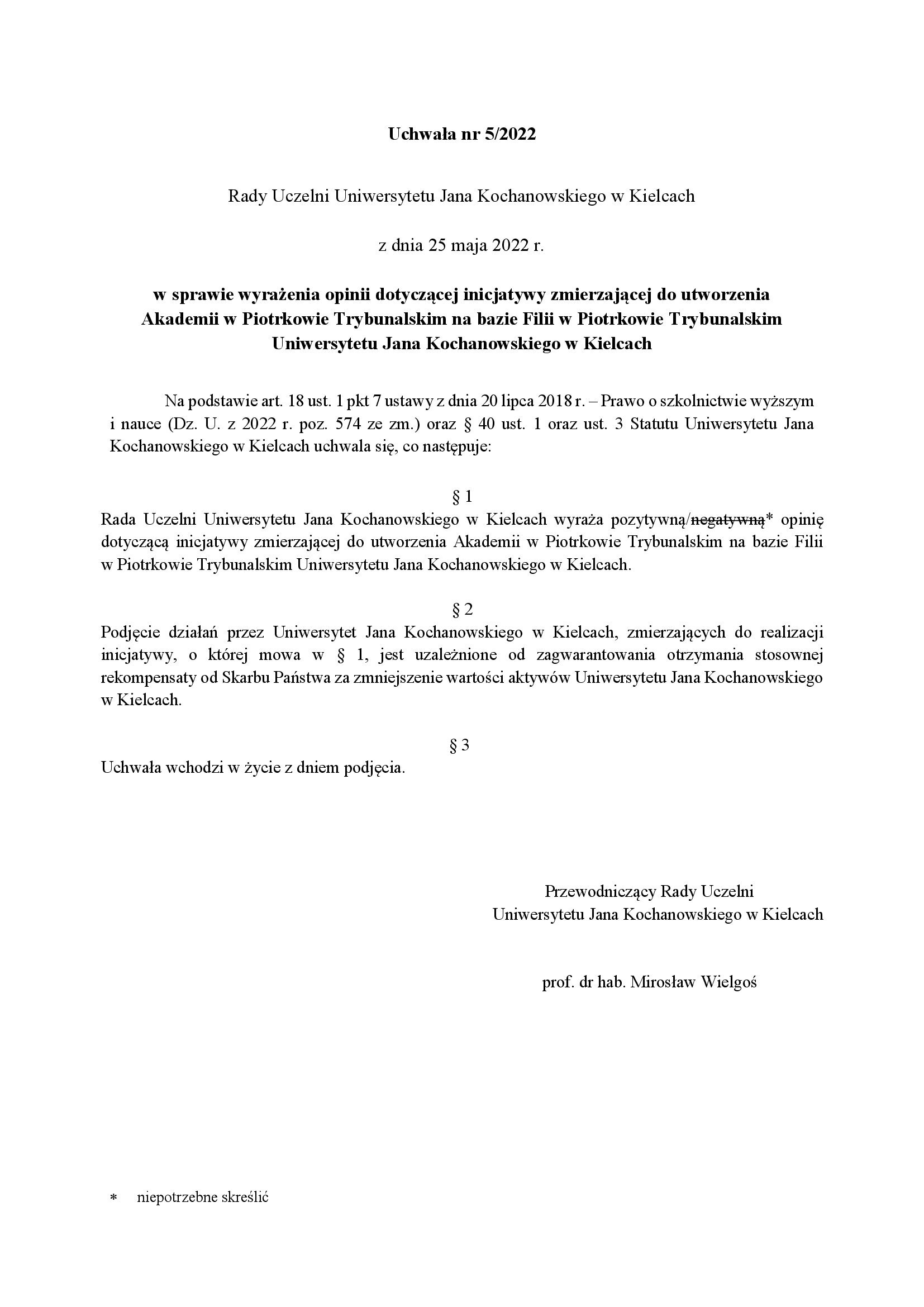 Rada uczelni przyjęła uchwałę, w której wyraża pozytywną opinię dotyczącą inicjatywy zmierzającej do utworzenia Akademii w Piotrkowie Trybunalskim na bazie filii. Jest jednak pewien warunek – zaznacza rektor Głuszek