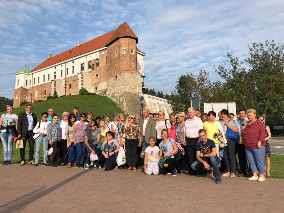 Tym razem wybór miejsca padł na malowniczy Sandomierz, który swoją popularność w ostatnim czasie zawdzięcza serialowi „Ojciec Mateusz”. W programie wyjazdu nie zabrakło oczywiście zwiedzania miejsc związanych z serialem oraz anegdot pani przewodnik o ekipie filmowej. Oprócz miejsc, w których często są kręcone serialowe sceny, uczestnicy zwiedzili m.in. gotycką Bramę Opatowską, Ratusz, Wąwóz Królowej Jadwigi. Ogromnym zainteresowaniem cieszyła się Podziemna Trasa Turystyczna. Drążone korytarze pełniły w minionych wiekach rolę składów kupieckich, w których przechowywano głównie wino, sól i śledzie. Służyły także jako schronienie w niebezpiecznych sytuacjach. Najgłębsze wyrobiska znajdują się na głębokości 12 m i krążą o nich niezliczone legendy. Wycieczkę zwieńczył integracyjny obiad. Uczestnicy zgodnie twierdzą, że był to bardzo udany wyjazd.