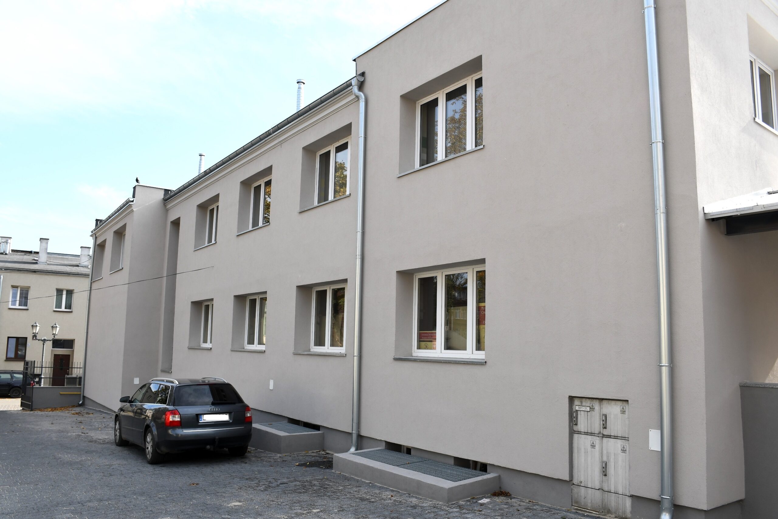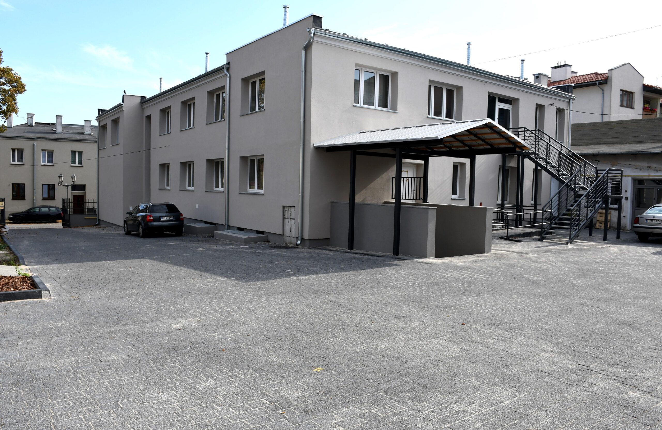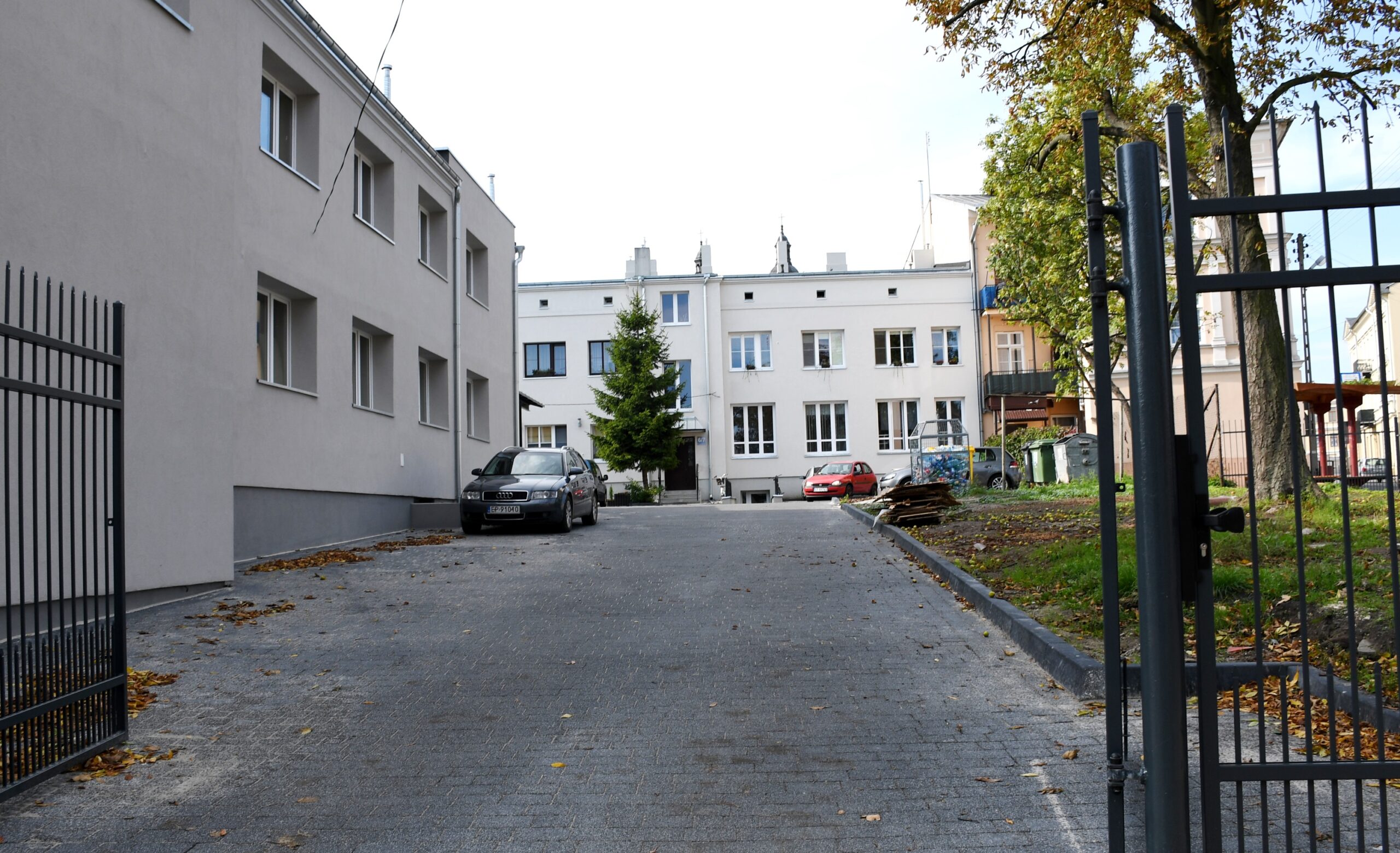 W ślad za modernizacją kamienicy poszła przebudowa podwórka. Rozebrano istniejące ogrodzenie i wybudowano nowe, a następnie drogowcy wyłożyli całe podwórze kostką betonową i wykonali zjazd dla osób niepełnosprawnych.