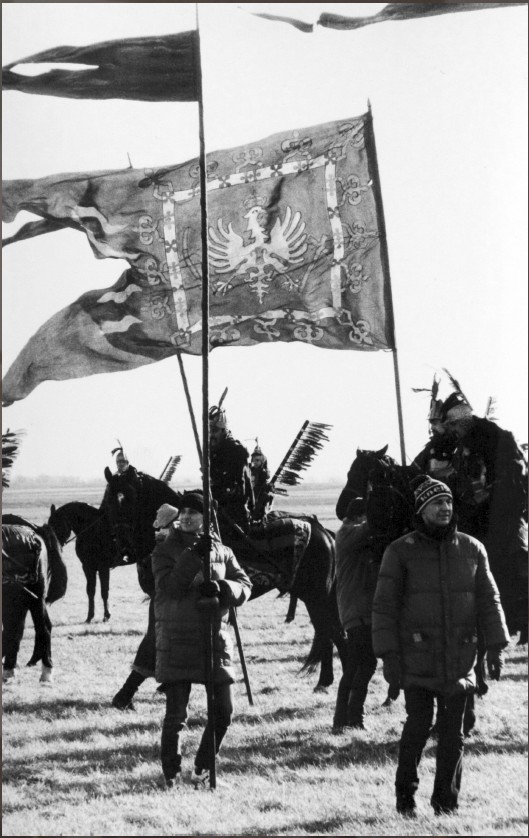 Zdjęcia do serialu trwały w Piotrkowie zaledwie trzy dni i ograniczyły się tylko i wyłącznie do terenu miejskiego lotniska. Od 24 do 26 lutego 1988 roku na pasie startowym należącym do Aeroklubu Ziemi Piotrkowskiej ekipa filmowa realizowała zdjęcia bitwy pod Byczyną, która w rzeczywistości rozegrała się czterysta lat wcześniej 24 stycznia 1588 roku. W nagrywanych sekwencjach wzięło udział blisko 50 koni, część z Państwowego Stada Ogierów w Bogusławicach oraz jeźdźcy w husarskich strojach. „Jeźdźcy i konie są odpowiednio ubrani z zachowaniem ówczesnych realiów. Na konie nałożone są ozdobne czapraki. Mają one też odpowiedni rząd, a w tym ogłowie, kulbaki, pełniejsze strzemiona i uchwyty do słynnych husarskich skrzydeł. Są też drewniane kopie i lance” – komentował poczynania filmowców prosto z planu dla ówczesnego „Tygodnika Piotrkowskiego” Ryszard Bartmański, zastępca dyrektora PSO w Bogusławicach. Zanim ekipa filmowa ruszyła na zdjęcia do Piotrkowa przez kilkanaście dni trwały treningi husarii na bogusławickiej ujeżdżalni. Przygotowania nadzorował i prowadził wspomniany Ryszard Bartmański: „Ćwiczymy szarżę husarii (…). Szarża taka zaczyna się od komendy stój, następnie był step, kłus, pochylenie kopii w kłusie, wolny galop i potem już natarcie na wroga na najwyższej szybkości. Pierwszy rząd nacierał z kopiami, drugi z kancerzami, a trzeci z szablami. Odbywało się to ławą albo poprzez uderzenie klinem.. W piotrkowskich zdjęciach udział wzięli najlepsi sportowcy i trenerzy bogusławickiego klubu, specjaliści od skoków przez przeszkody, uczestnicy Wszechstronnego Konkursu Konia Wierzchowego i powożenia zaprzęgami, w tym m.in. bracia Bogdan i Grzegorz Kubiakowie, Bogusław Owczarek, Roman Kusz, Kazimierz Andrzejewski, Zbigniew Januszewski, Jacek Kozłowski, Zbigniew Madejczyk oraz Marek Skrzypczyk. Jak zapewniał dziennikarzy Ryszard Bartmański jeźdźcy ci zajęli stanowiska „(…) w pierwszym rzędzie, tym najbliższym od kamery filmowej.”. Co ciekawe ekipa filmowa przystępując do zdjęć w Piotrkowie nie miała jeszcze w pełni skompletowanej obsady. „Jeśli chodzi o obsadę aktorską to nie zapadły jeszcze wszystkie decyzje” – zwierzał się dziennikarzom scenograf do spraw militarnych Tomasz Bierawski. Na planie w Piotrkowie nie obyło się bez kłopotów. Największym i najważniejszym był brak śniegu. Białego puchu wymagał scenariusz, bowiem zgodnie z historycznym przekazem bitwa pod Byczyną miała miejsce w styczniu. Ostatecznie z powodu jego braku filmowcy podczas kręcenia zdjęć wykorzystali dużą ilość świec dymnych. Białe opary dość dobrze imitowały zimową aurę.