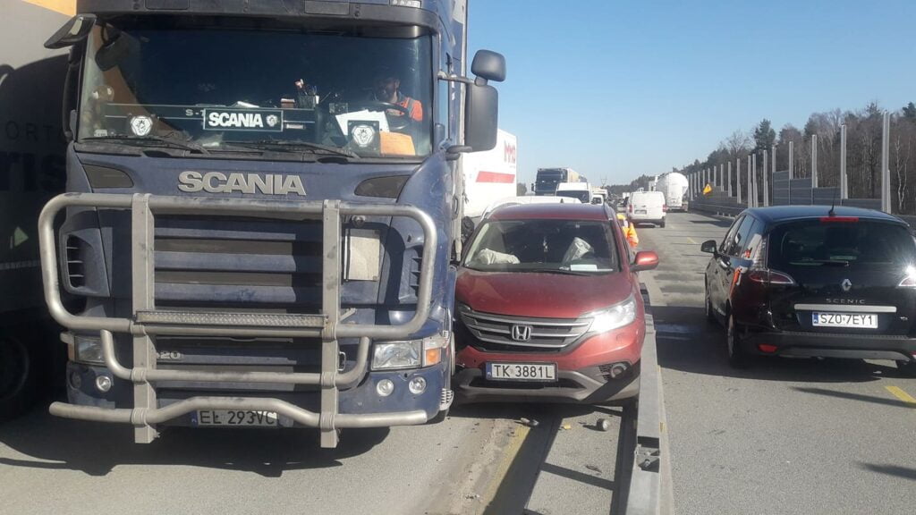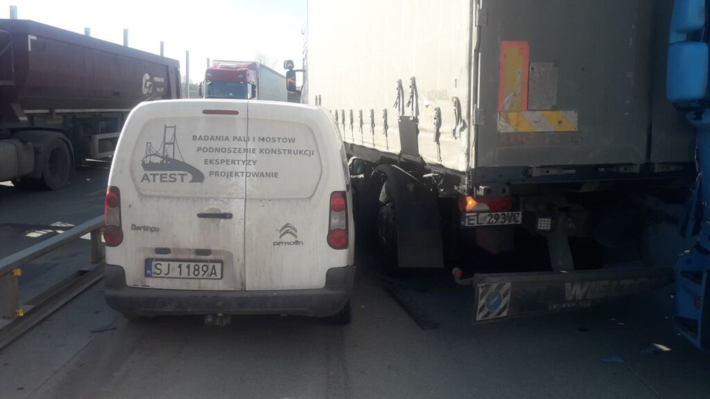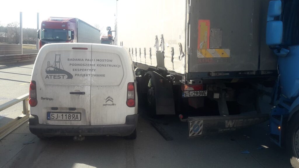 5 ciężarówek i 2 osobówki brały udział w karambolu do którego doszło w czwartek na budowanym fragmencie autostrady A1 w okolicy Niechcic. Na szczęście nikomu nic poważnego się nie stało. Ruch odbywa się jednym pasem, a utrudnienia w stronę Katowic, potrwać mogą jeszcze kilka godzin.
