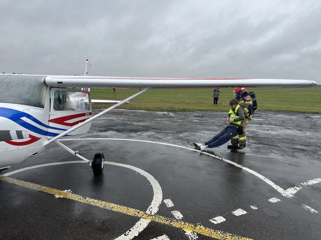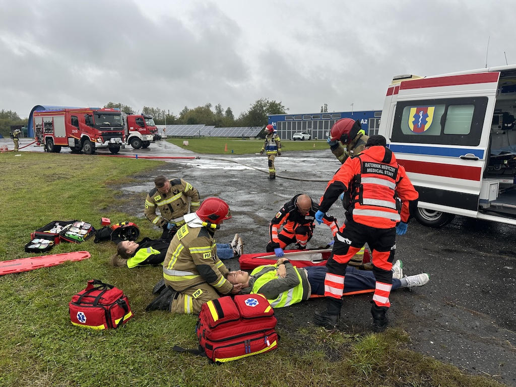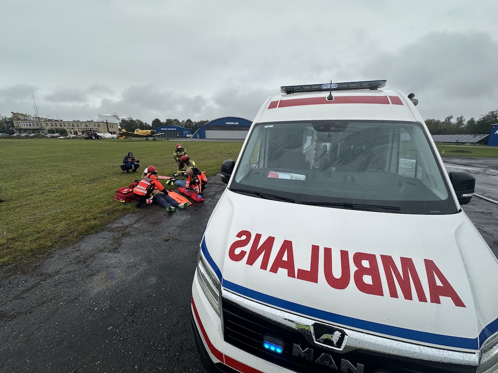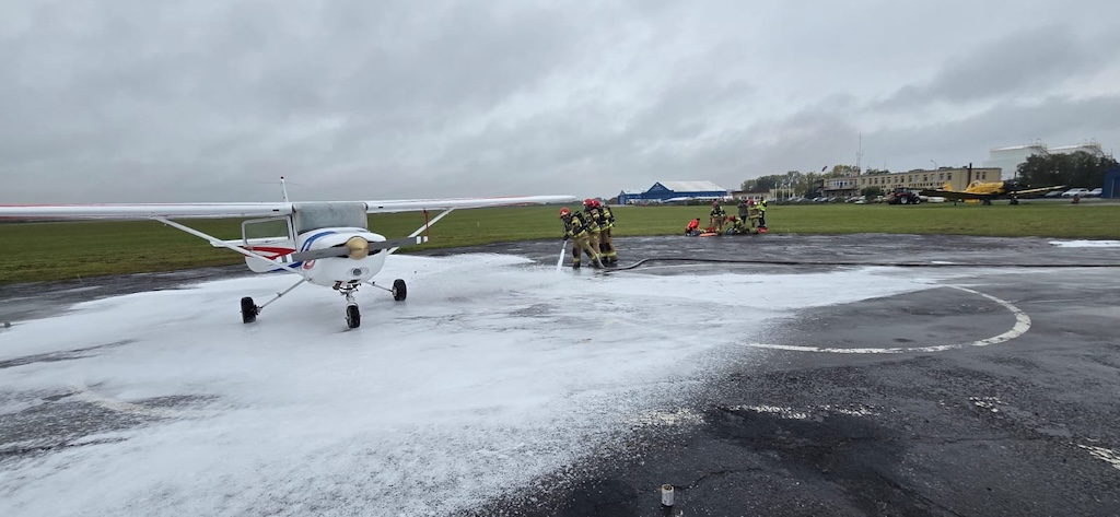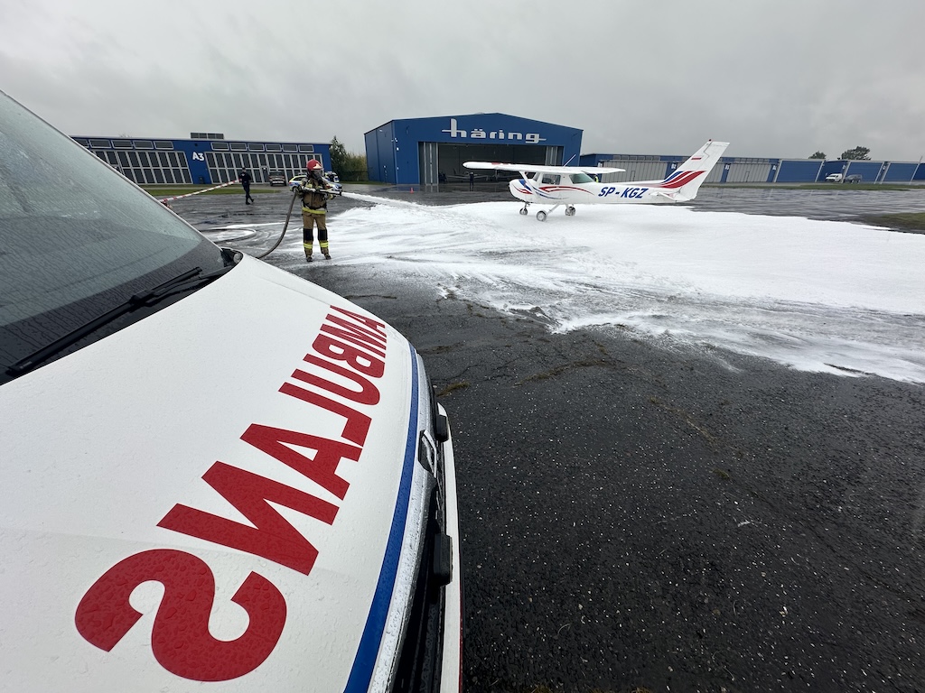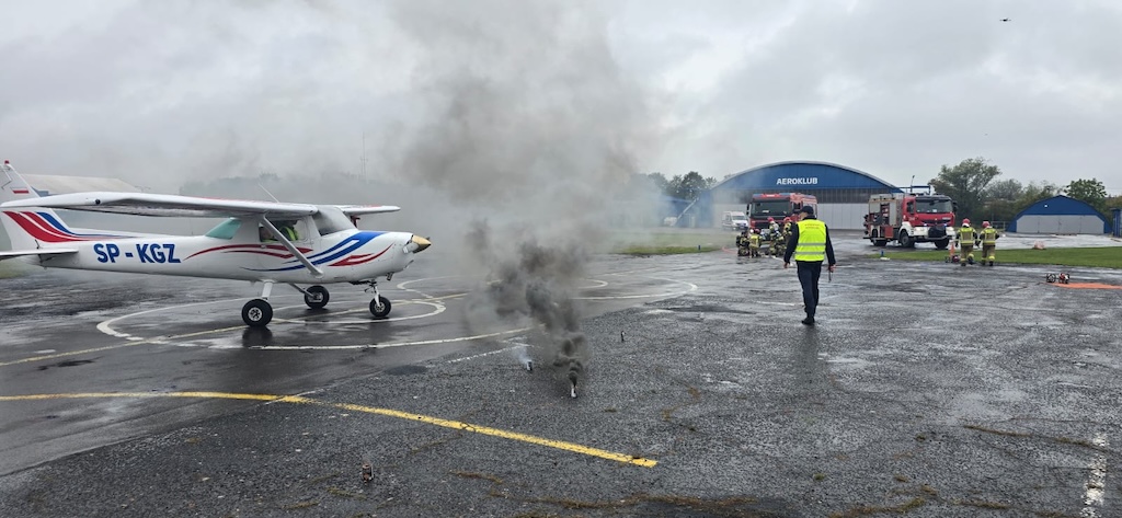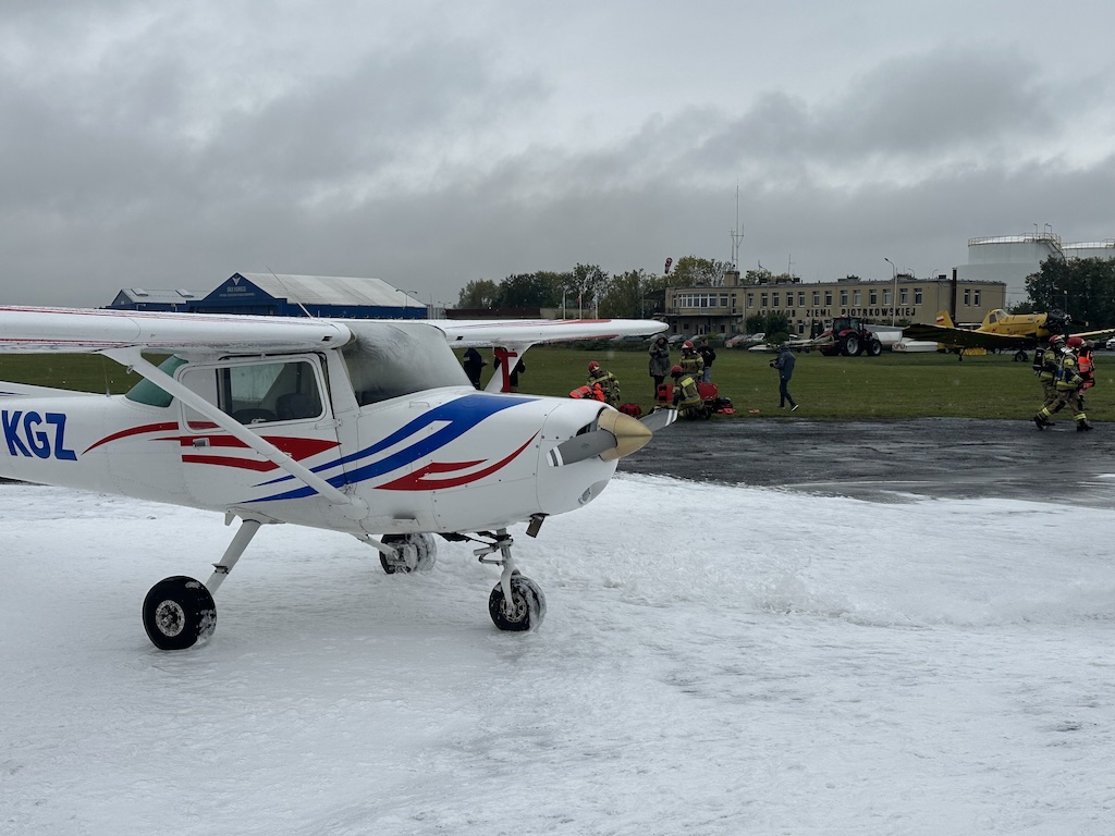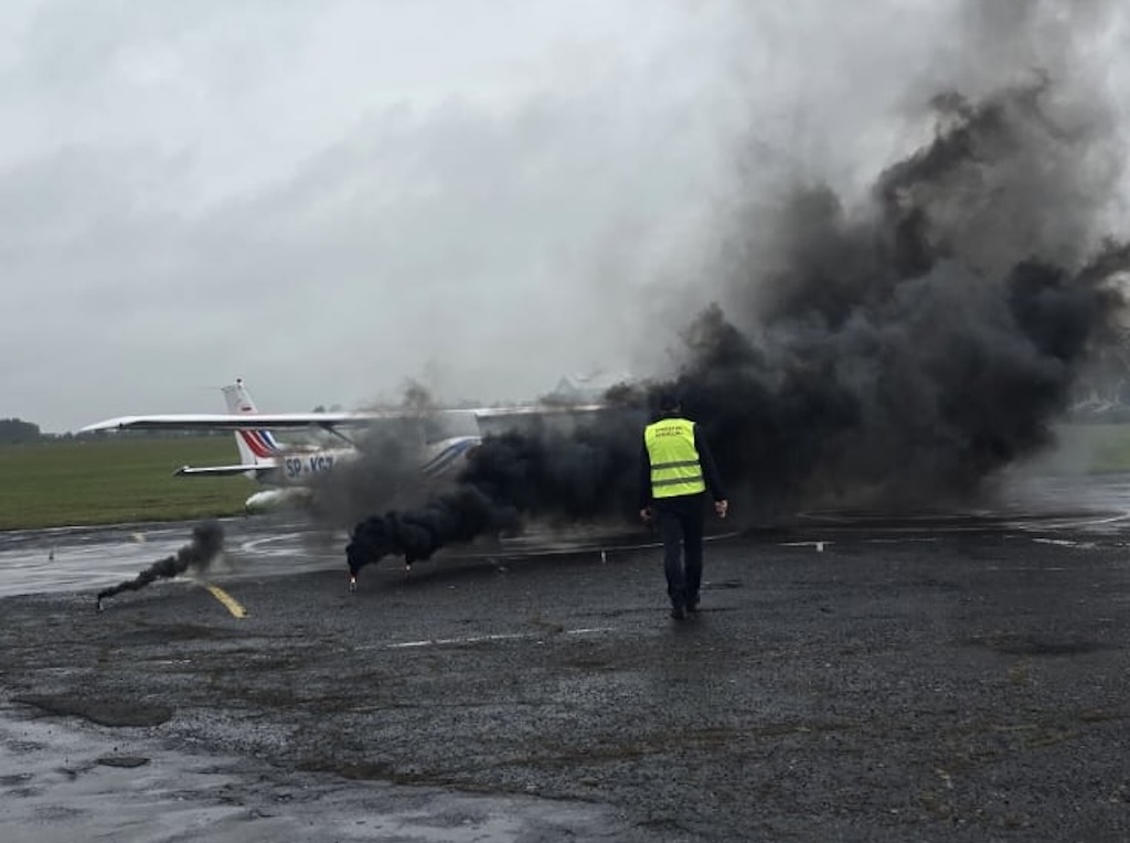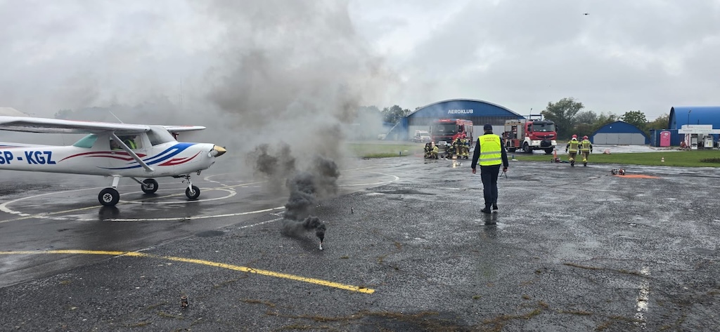 – Kierujący lotami pełniący dyżur na wieży otrzymał zgłoszenie od załogi samolotu, która była nad lotniskiem, że przestał im pracować silnik. Załoga podjęła próbę lądowania bez silnika i niestety próba ta okazała się dość dramatyczna w skutkach. Samolot uderzył w ziemię i zaczął się z niego wydobywać dym. Niezwłocznie poinformowane zostały służby ratunkowe pod numerem 112, a na miejsce udał się zespół zarządzający lotniskiem, by ratować poszkodowanych. taki był scenariusz ćwiczeń kompleksowych. – powiedział Marcin Pampuch, dyrektor Aeroklubu, zarządzający lotniskiem.