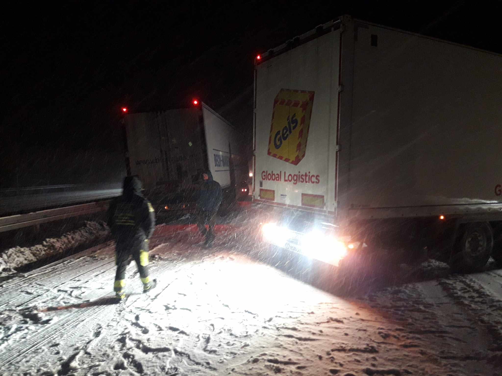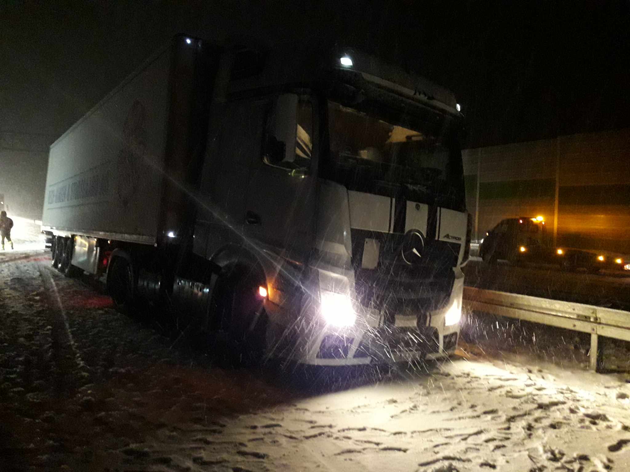Najbardziej dotkliwe dla kierowców było zdarzenie z minionej nocy na autostradzie A1 w okolicy miejscowości Dąbrówka, Mąkoszyn. Ciężarówka wpadła w poślizg i stanęła w poprzek drogi, całkowicie blokując ruch w kierunku Piotrkowa i Katowic. Trzeba było użyć ciężkiego sprzęty, by odblokować drogę.