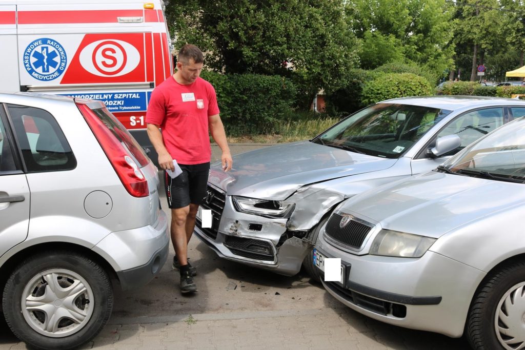 Kierujący audi zasłabł za kierownicą i oprócz swojego, uszkodził 3 zaparkowane na poboczu pojazdy. Wezwana na miejsce karetka zabrała starszego mężczyznę do szpitala.