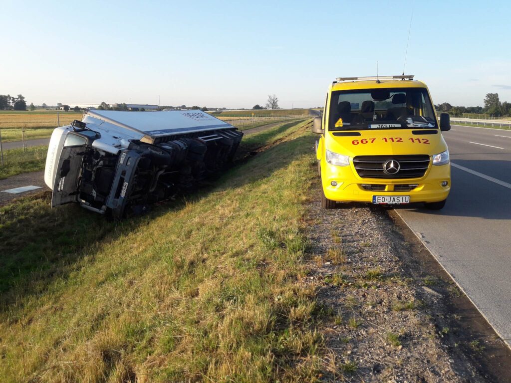 Tym razem na A1 ciężarówka wpadła do rowu i przewróciła się. Do zdarzenia doszło w środę o 2:45 w okolicach miejscowości Wola Bykowska, na pasie w kierunku Łodzi. Na szczęście kierowcy nic poważnego się nie stało. Policja wyjaśni przebieg tego zdarzenia.