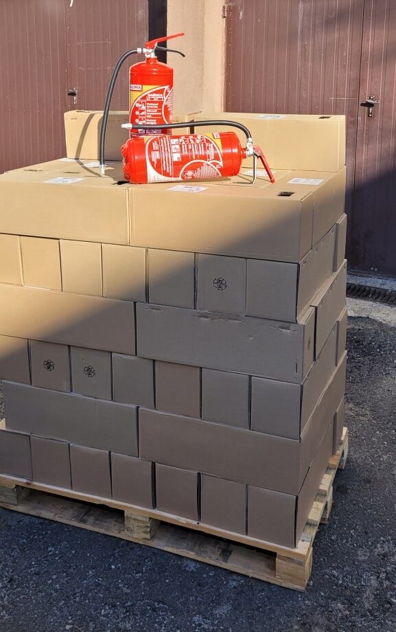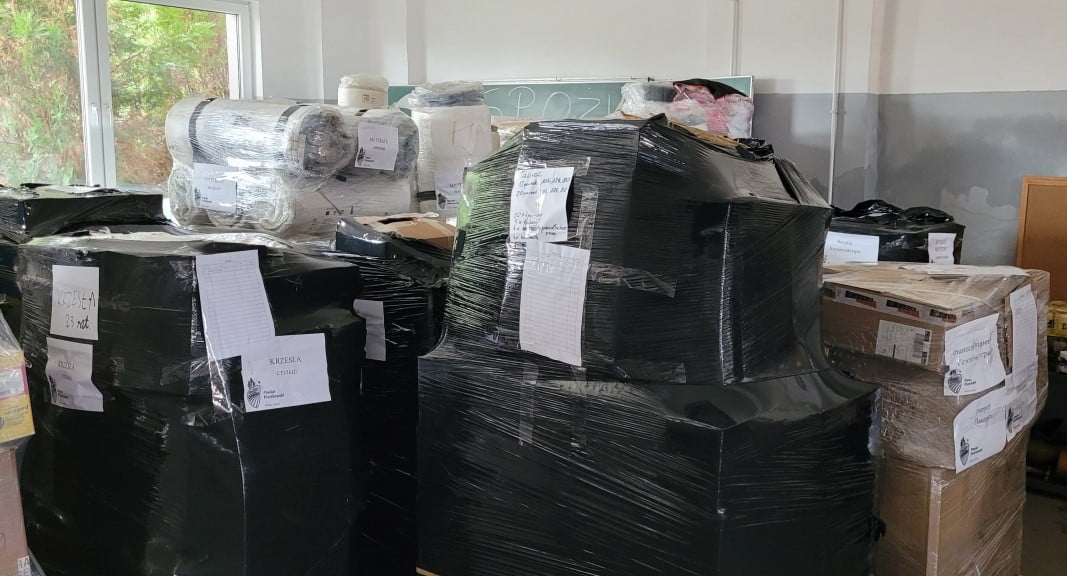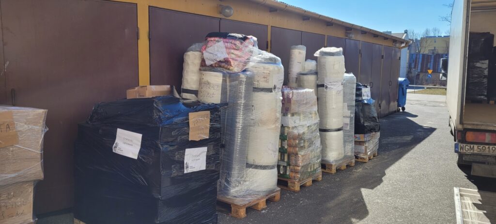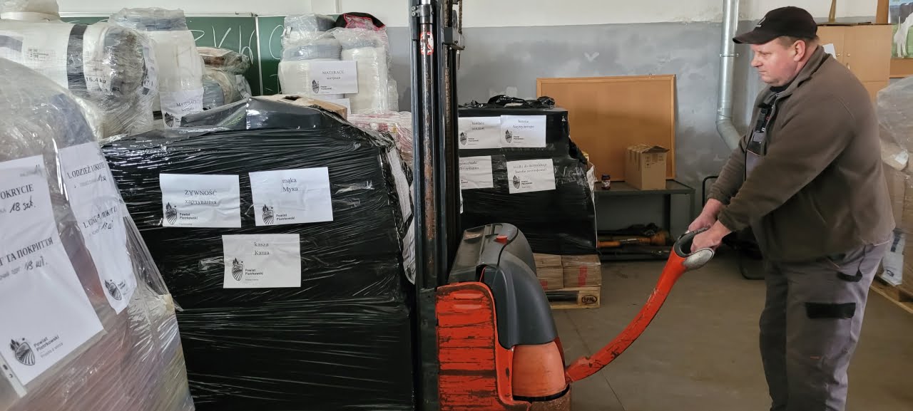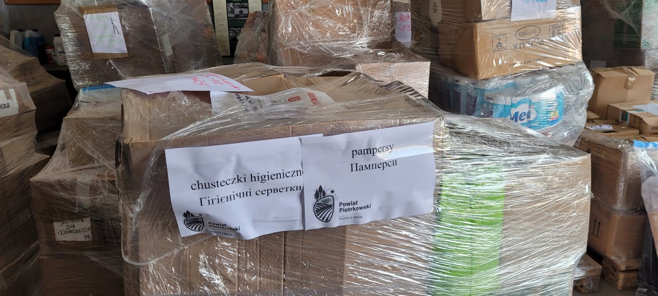 Krzesła, materace, powerbanki, baterie, gaśnice, środki opatrunkowe, higieniczne i ochronne, żywność, koce i wiele innych produktów – 12 palet wysłał do Równego we wtorek samorząd powiatu piotrkowskiego i radomszczańskiego.